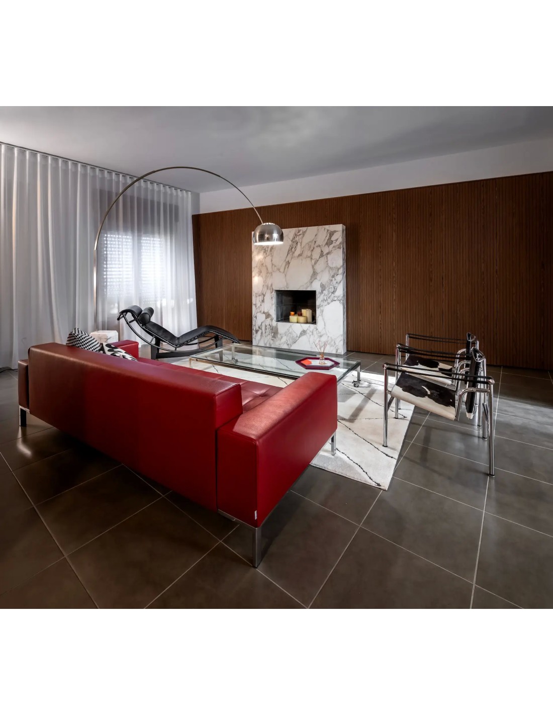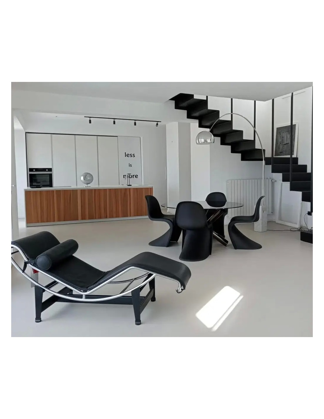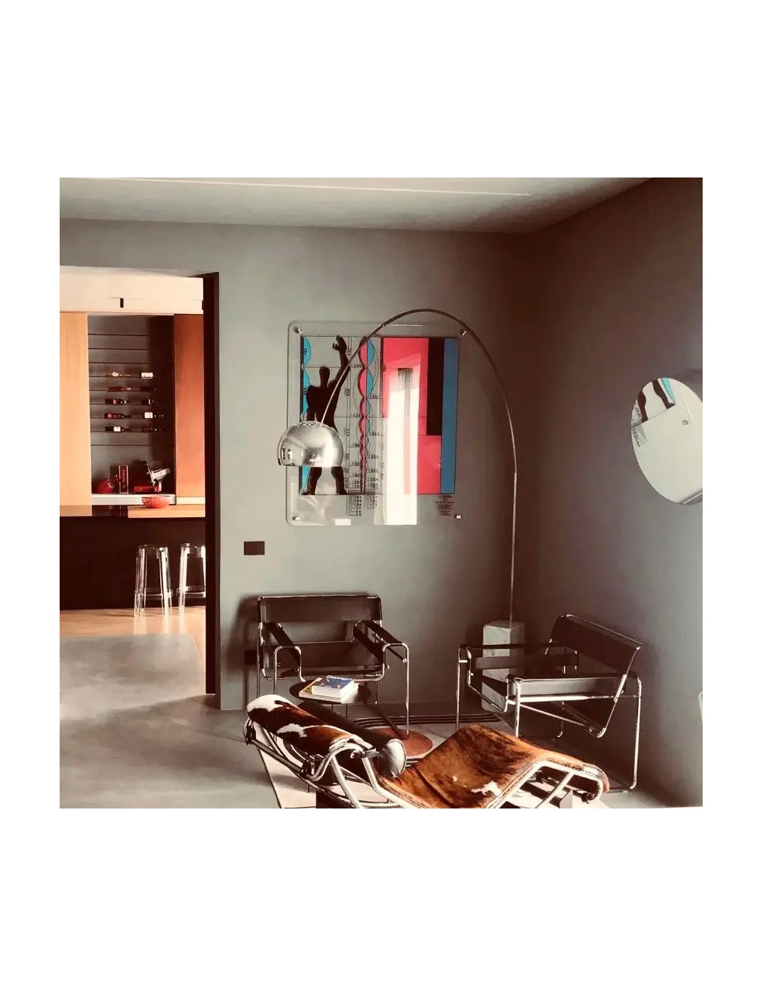 L'Arco Flos eccelle nell'illuminazione di tavoli da pranzo, permettendo una luce sospesa senza fissaggi a soffitto. Nei soggiorni diventa elemento architettonico che definisce zone conversazione con la sua presenza scultorea. Studi professionali e spazi contract la scelgono per il suo valore simbolico: comunicare immediatamente cultura del design e ricerca dell'eccellenza. La regolabilità telescopica dello stelo (da 117 a 137 cm di altezza del diffusore) e l'orientamento della cupola permettono di adattare perfettamente la luce a ogni esigenza, dalla lettura alla cena formale.
