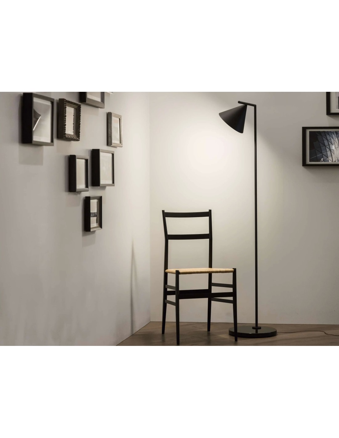 FlosApparecchio di illuminazione da terra a luce diretta direzionabile. Asta e cono in acciaio verniciato o ottone spazzolato.