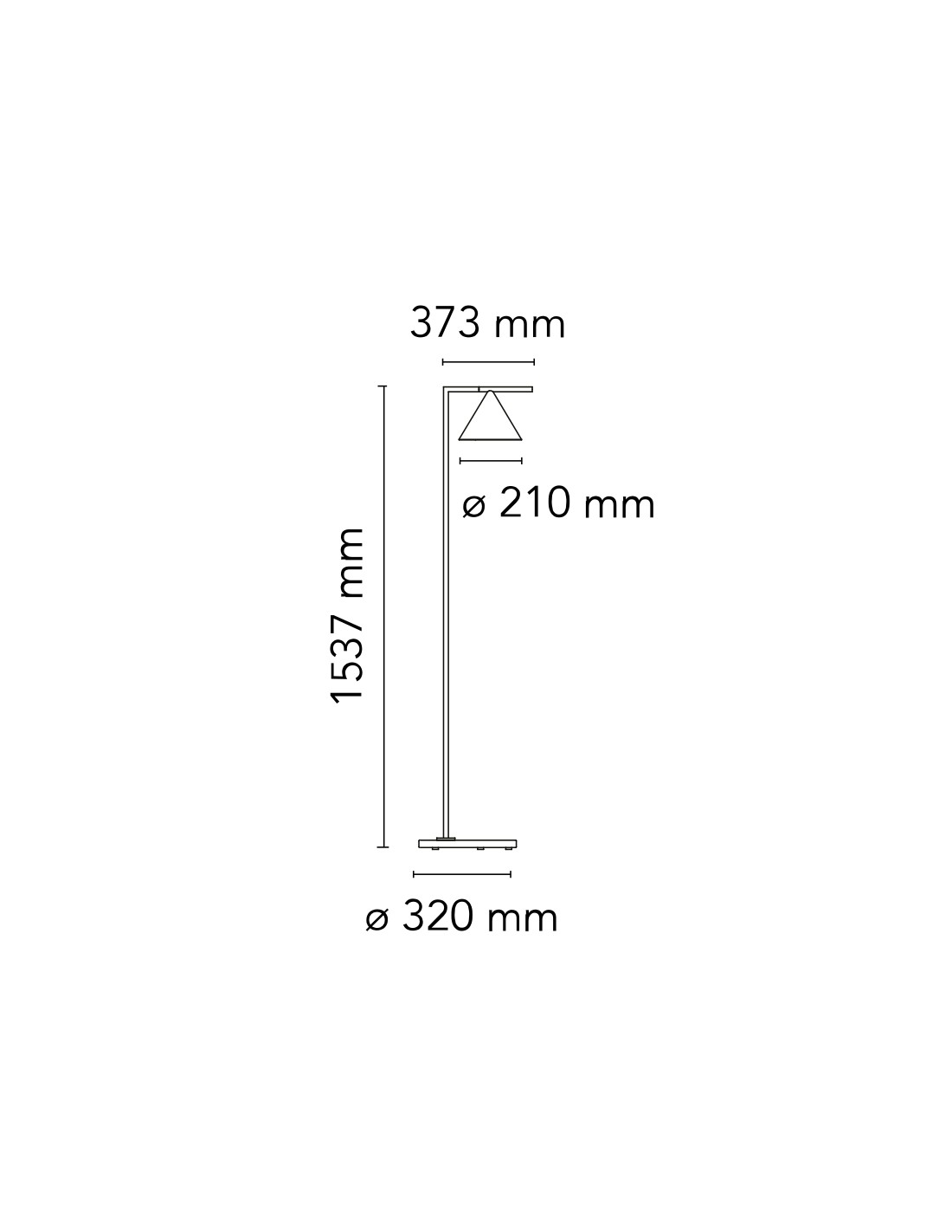Apparecchio di illuminazione da terra a luce diretta direzionabile. Asta e cono in acciaio verniciato o ottone spazzolato.