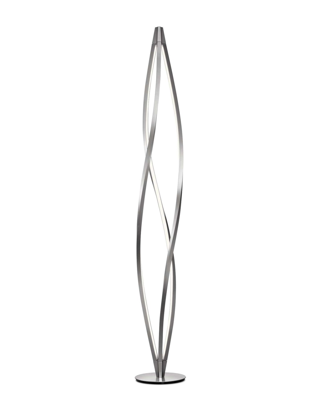 Lampade da terra realizzate con estruso di alluminio la cui torsione fuori asse permette un'illuminazione diffusa a 360°. La sorprendente torsione è realizzata attraverso una tecnica ingegnerizzata da Nemo e crea una forma fluida ed elegante. I diffusori sono in metacrilato opalino mentre le parti terminali sono in alluminio pressofuso. le lampade sono disponibili in bianco opaco, nero opaco, grigio titanio e oro opaco. Nella versione terra interruttore e dimmer su cavo.