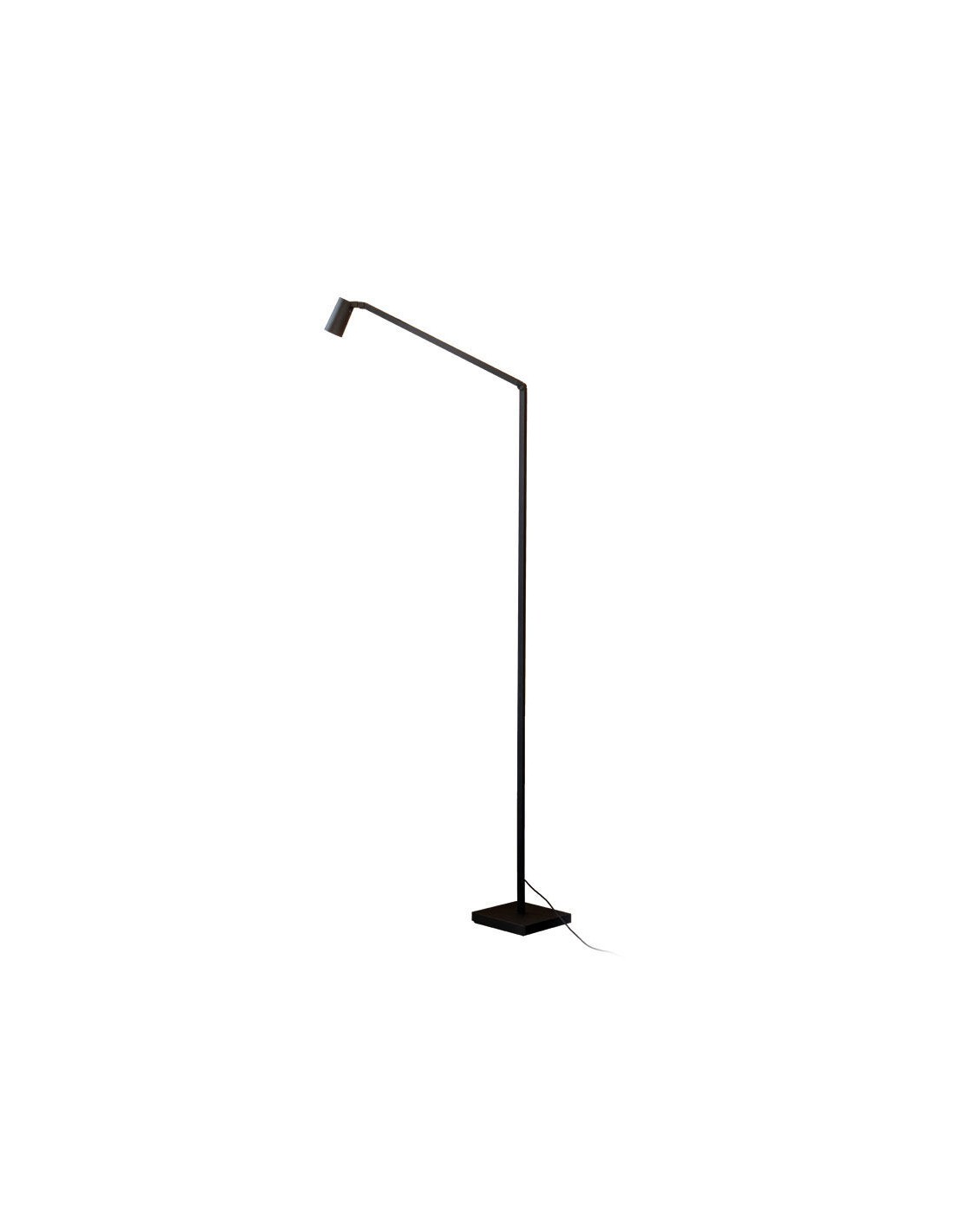Famiglia di lampade a LED da tavolo, da terra e da parete in alluminio verniciato nero opaco estruso con snodi per un posizionamento flessibile e dinamico della luce. Disponibile nella versione con illuminotecnico lineare in polimero riempito con fibre di vetro che ruota su se stesso e nella versione con farde cilindrica in alluminio. Dimmer a bordo situato sullo stelo della lampada.