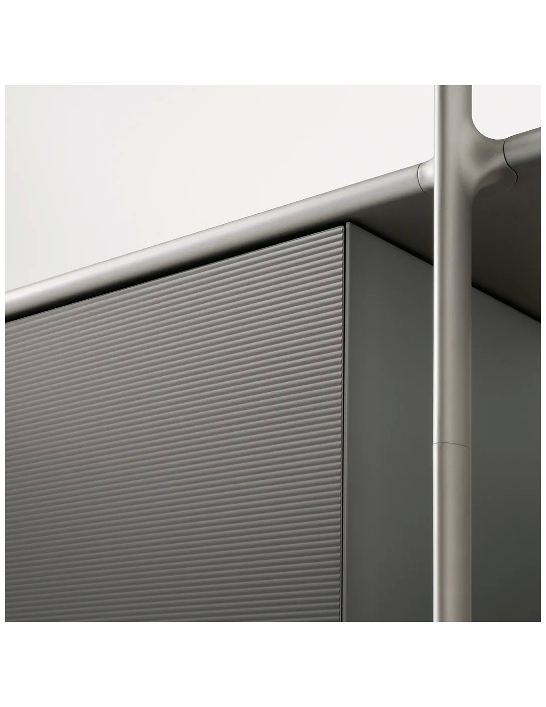 Wind è l’archetipo della libreria nell'interpretazione Rimadesio: un sistema modulare che coniuga leggerezza estetica e innovazione tecnologica. Il fulcro del progetto, interamente in alluminio, è rappresentato dall’unione fra ripiani estrusi e montanti in pressofusione, in versione centrale e terminale.