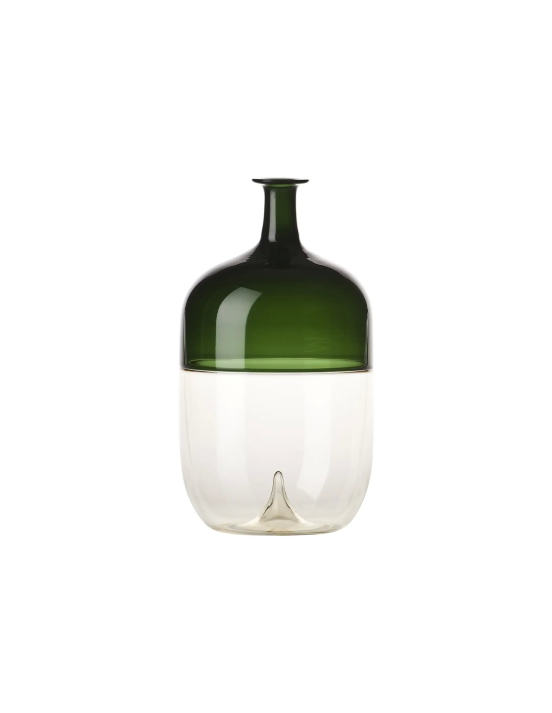 Bolle trasforma l’aria in materia, in due luoghi cromatici distinti, uniti fisicamente con la tecnica dell’incalmo, ovvero l’accoppiatura a caldo di due forme soffiate.