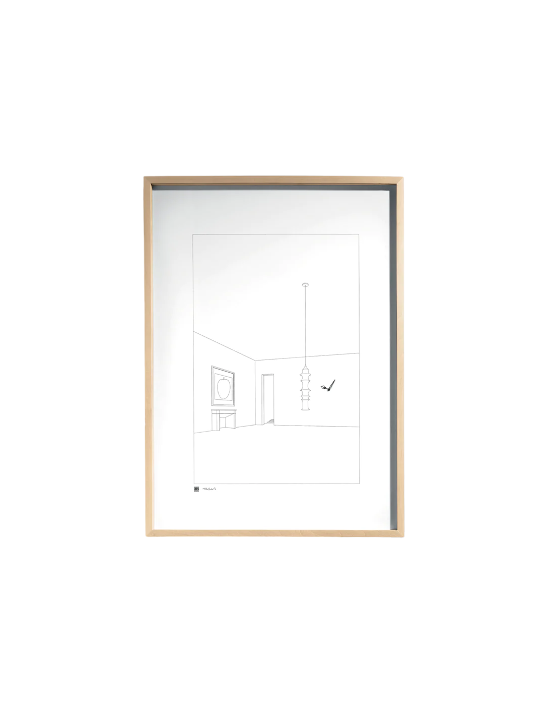 Danese MilanoDrawing no 12 è un orologio all'interno di una cornice rettangolare che contiene la rappresentazione di una stanza.