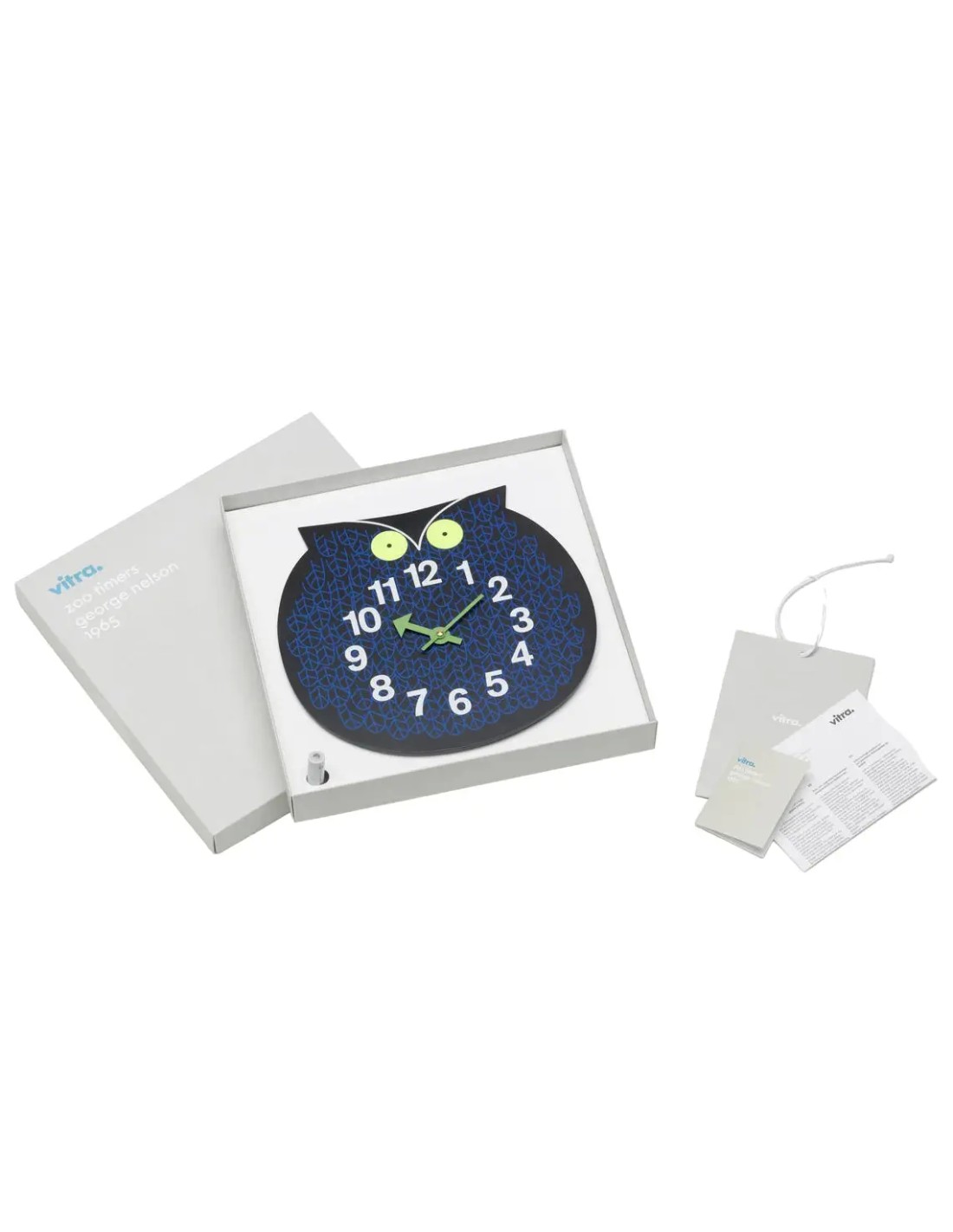 VitraGli Zoo Timers (1965) di George Nelson, orologi da parete con la forma di personaggi colorati del regno animale e disegnati a mano.