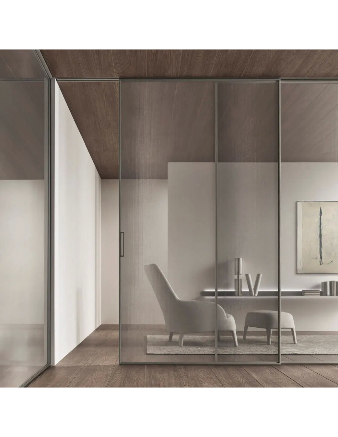 L’interpretazione della porta scorrevole all’insegna del massimo rigore geometrico. Un progetto in cui i pannelli vengono realizzati sempre su misura, con un profilo strutturale in alluminio di minimo spessore che valorizza al massimo le qualità estetiche esclusive del vetro Rimadesio. Un sistema dotato di innovative soluzioni tecniche brevettate, per garantire la più ampia libertà progettuale, associata alla semplicità di installazione e ad un’eccezionale affidabilità nel tempo.