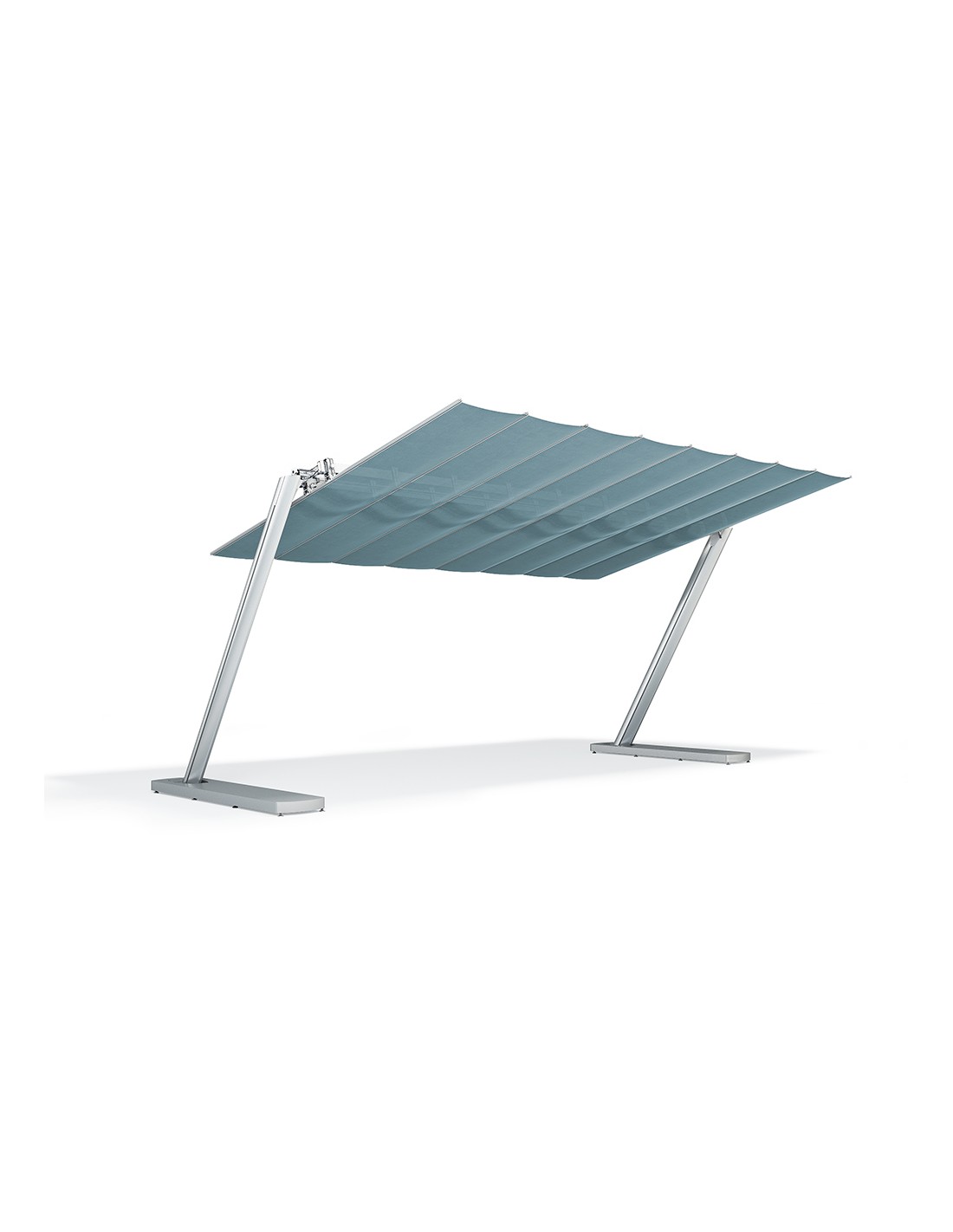 Fim - UmbrellasSistema modulare dal design moderno e minimalista che permette di coprire grandi superfici senza ingombro centrale. I pali inclinati a sezione ellittica caratterizzano il design