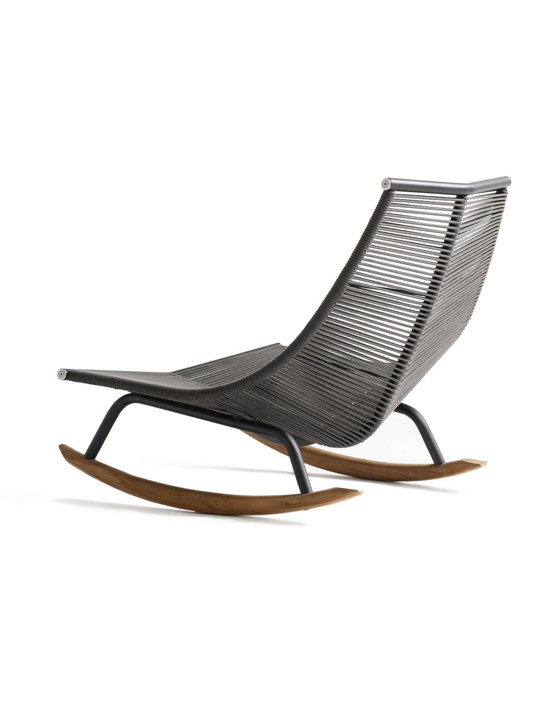 Le poltrone da esterno LAZE sono concepite come delle "sedute da ozio", ancor più nella versione a dondolo. LAZE è l'invito al riposo, alla tranquillità di leggere un libro in un salotto da giardino fino ad addormentarsi, cullati dal piacevole moto del dondolo. La rigorosa struttura in acciaio inossidabile, avvolta dai filamenti di corde in poliestere o in acrilico, incontra i pattini in teak, creando un mix di materiali dall'equilibrio perfetto.Le molteplici varianti cromatiche offerte da questa collezione lasciano spazio alla massima personalizzazione del proprio arredamento outdoor.