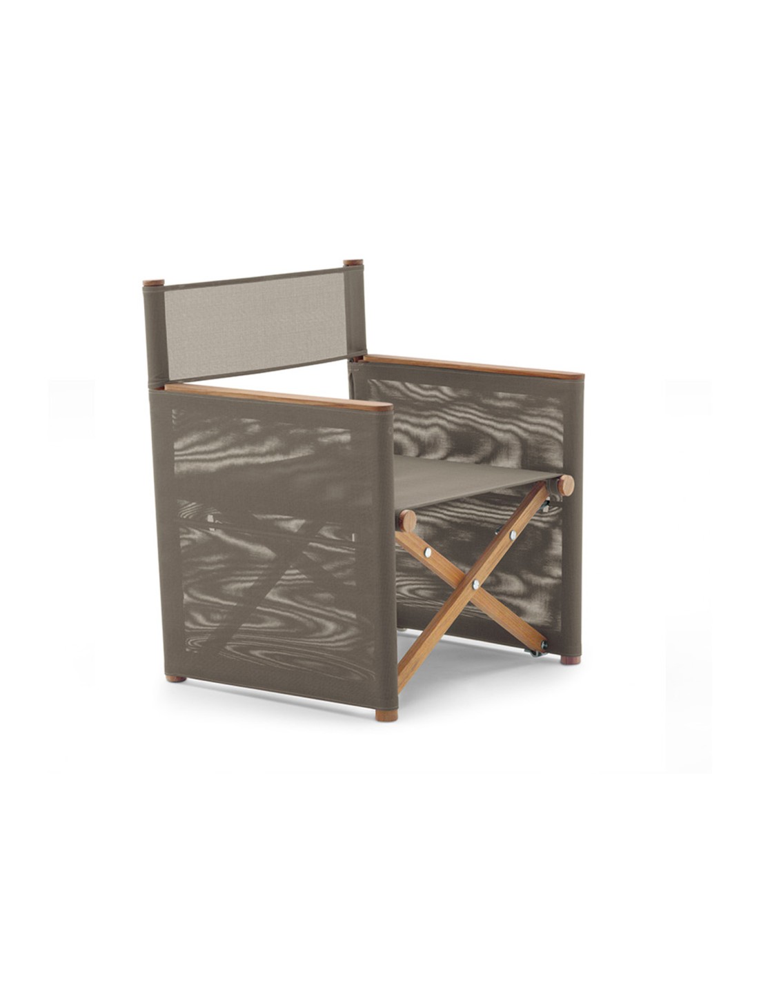 La collezione di sedute pieghevoli per esterno ORSON è una rivisitazione in chiave contemporanea della classica sedia da regista. Un progetto completo che segue la tradizione dei mobili per esterno che alla fine della stagione estiva vengono riposti, grazie al comodo sistema di chiusura che permette alla poltroncina di rimanere in piedi da sola. ORSON ha una linea fresca e innovativa, arricchita dal tessuto strutturale Batyline, che la veste anche lateralmente e ne consente l'utilizzo senza cuscini. La struttura realizzata in massello di teak, impreziosita da dettagli in acciaio inossidabile 304 elettrolucidato.