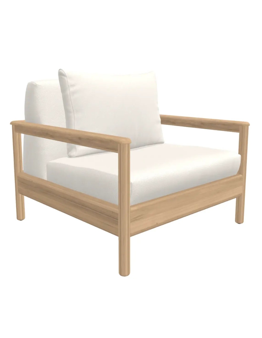 La poltrona della collezione Bali ha una struttura essenziale e dalle geometrie regolari, che si abbina a cuscini morbidi e spaziosi. Una proposta dai tratti rilassanti e meditativi, che invita a mettersi comodi e trascorrere il tempo immersi nella natura.