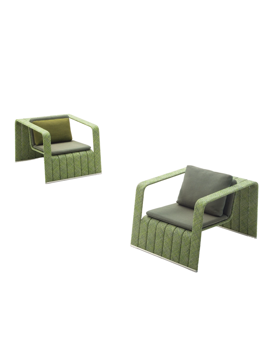La poltrona Frame di Paola Lenti è un'originale seduta da esterni contraddistinta da un design squadrato e rigoroso ingentilito dal rivestimento disponibile in vari filati del brand.