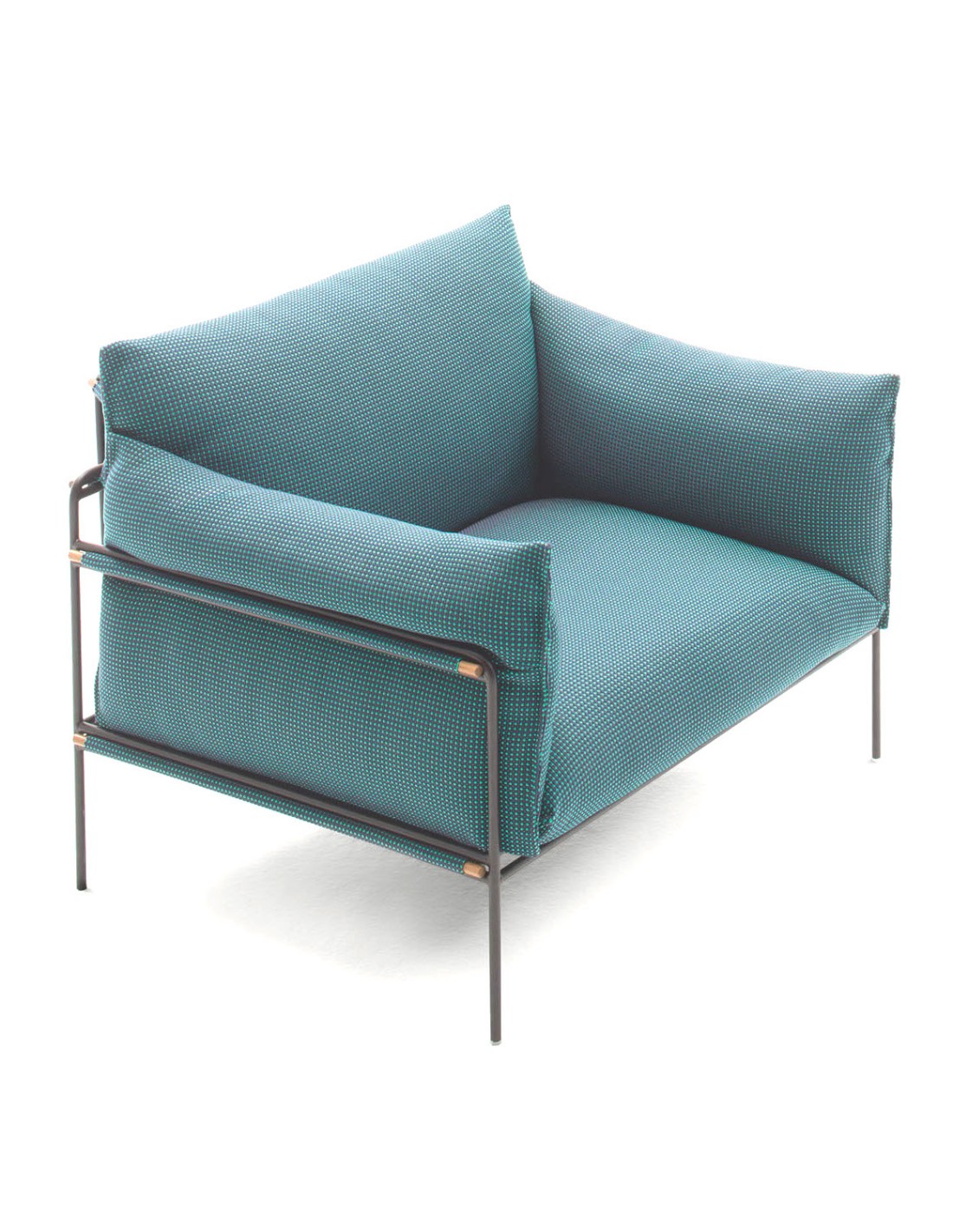 La struttura esposta in acciaio ed i particolari in legno massello fanno da guscio alla comoda imbottitura sfoderabile, creando una perfetta armonia tra comfort ed eleganza. La poltrona per esterno Kabà, disponibile in numerose finiture, fa parte della collezione omonima, che comprende divani a due posti, divani modulari e pouf.