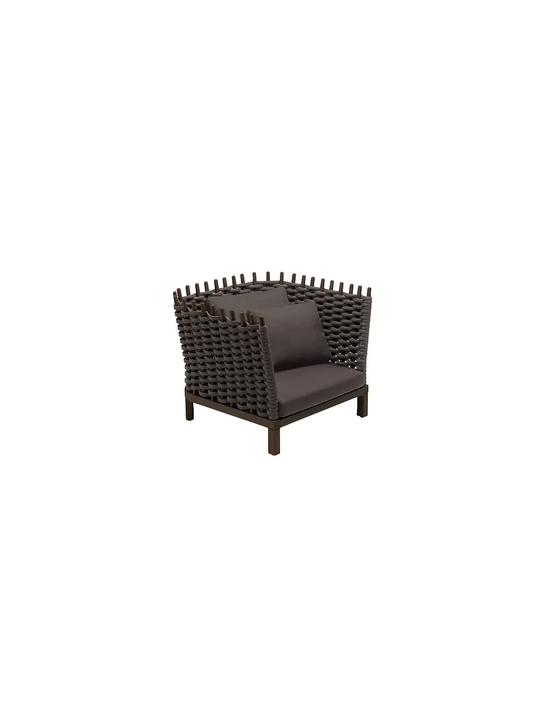 Presenta una struttura in legno di sassofrasso naturale o tinto wengé, e telaio di seduta in acciaio inox, molleggio su cinghie elastiche; puntali in materiale plastico. Rivestimento fisso realizzato con un profilo di silicone impermeabile ricoperto in filato Rope tinta unita o mélange o in filato Aquatech tinta unita.