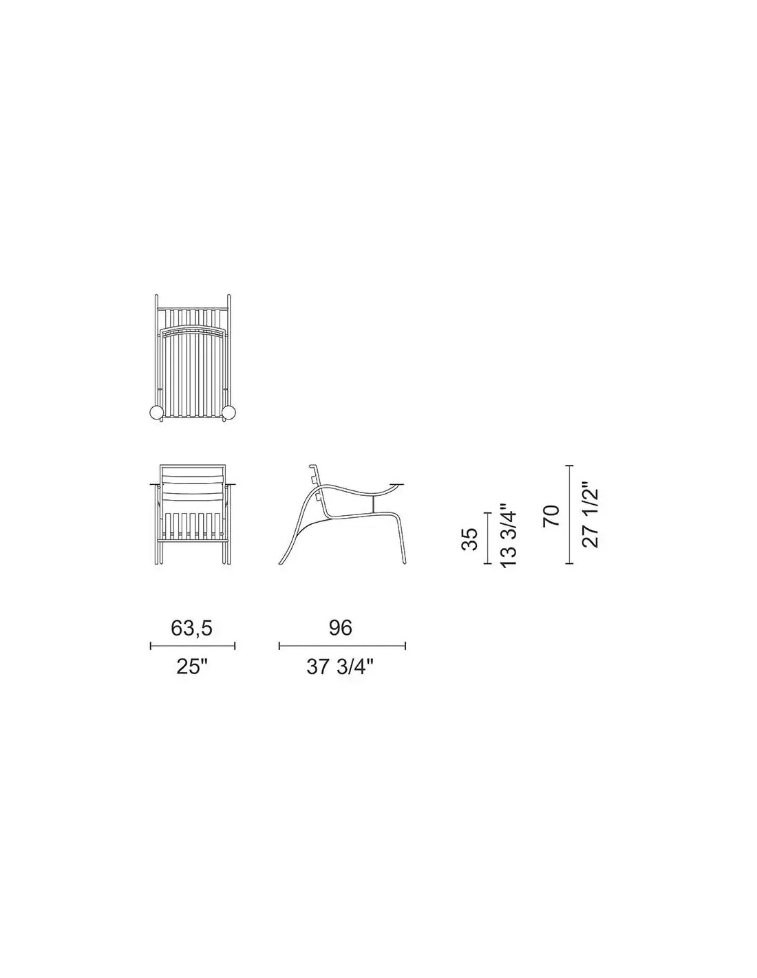 Un nome eloquente per un prodotto che invita alla contemplazione. Per la poltrona Thinking Man’s Chair, Jasper Morrison ha studiato un design in cui tutti gli elementi sono funzionali al conseguimento di una seduta confortevole per momenti distensivi di relax e riflessione: realizzata in profilato piatto nelle aree di appoggio del corpo e in tubolare nella struttura principale, la poltrona offre braccioli che presentano vassoi porta bicchieri integrati. La poltrona Thinking Man’s Chair è disponibile in metallo verniciato, nei colori bianco puro, blu violaceo e rosso ossido. La declinazione in rosso ossido è disponibile in un’edizione arricchita da scritte che indicano i raggi di curvatura della struttura metallica.