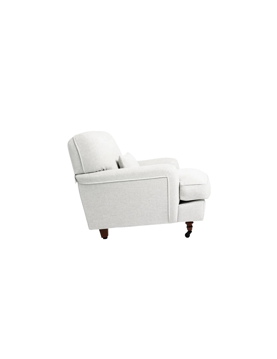Estremamente curata anche nei piccoli dettagli, ha i piedini in legno sagomato con rotelle piroettanti e cuscini imbottiti in piuma d'oca. Design Vico Magistretti