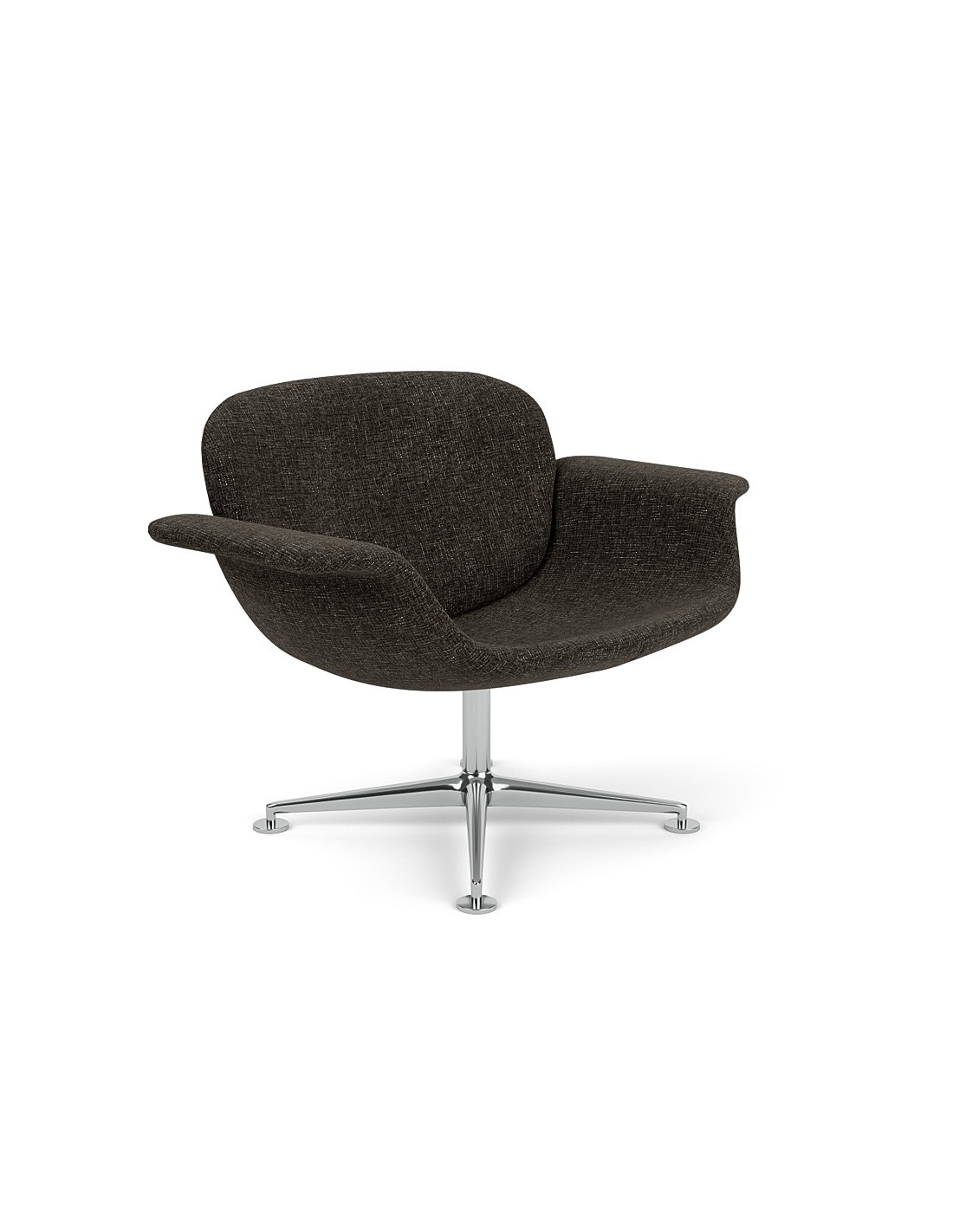 KnollKN01, una poltrona con schienale basso, presenta una silhouette curva e una base in alluminio. Le sue proporzioni equilibrate offrono un ingombro compatto e una forma invitante