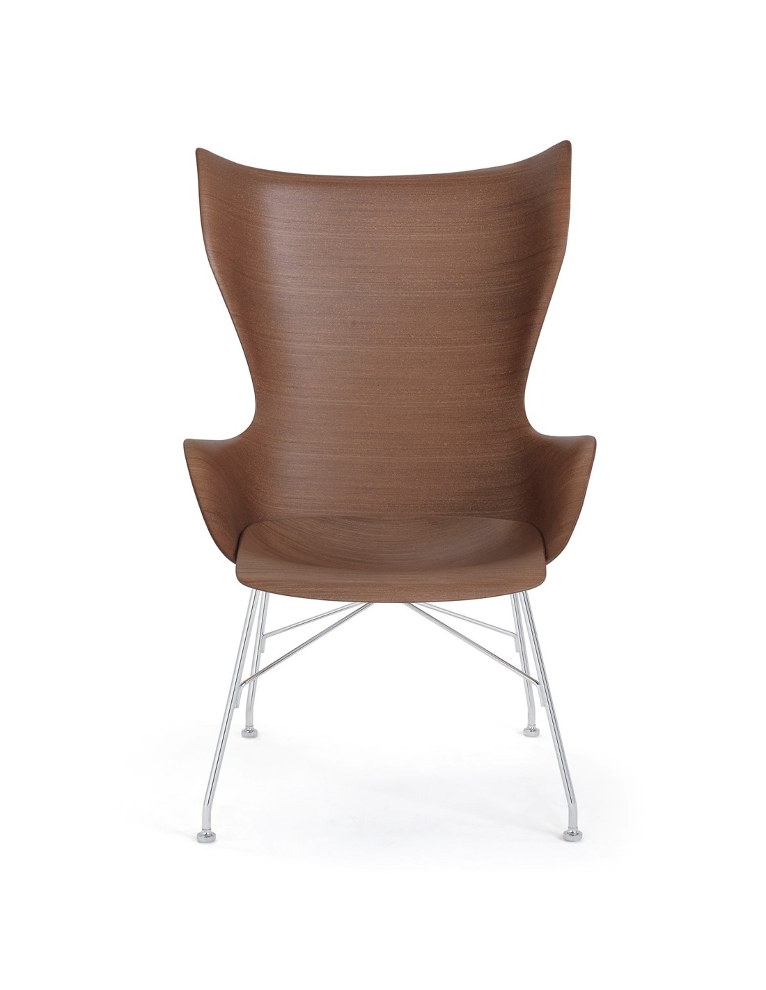 La collezione "Smart Wood" Kartell nasce dalla continua ricerca, che ha portato Kartell a dare tridimensionalità a un prodotto che fino ad oggi è stato bidimensionale. Attraverso uno speciale brevetto, infatti, il legno viene lavorato con uno stampo in grado di portare al limite la curvatura del pannello e creare la scocca della seduta con rotondità sinuose. K/Wood è la poltrona in stile royal e completata da S/wood, un poggiapiedi coordinato con le stesse finiture.