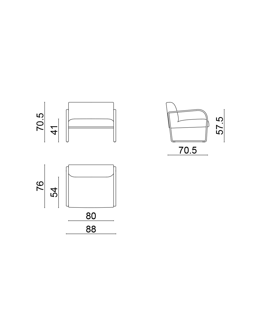 ArperPoltrona con struttura a slitta e braccioli integrati in alluminio verniciato. La scocca imbottita, realizzata con telaio in metallo e multistrato, è rivestita in tessuto, pelle, tessuto spalmato.