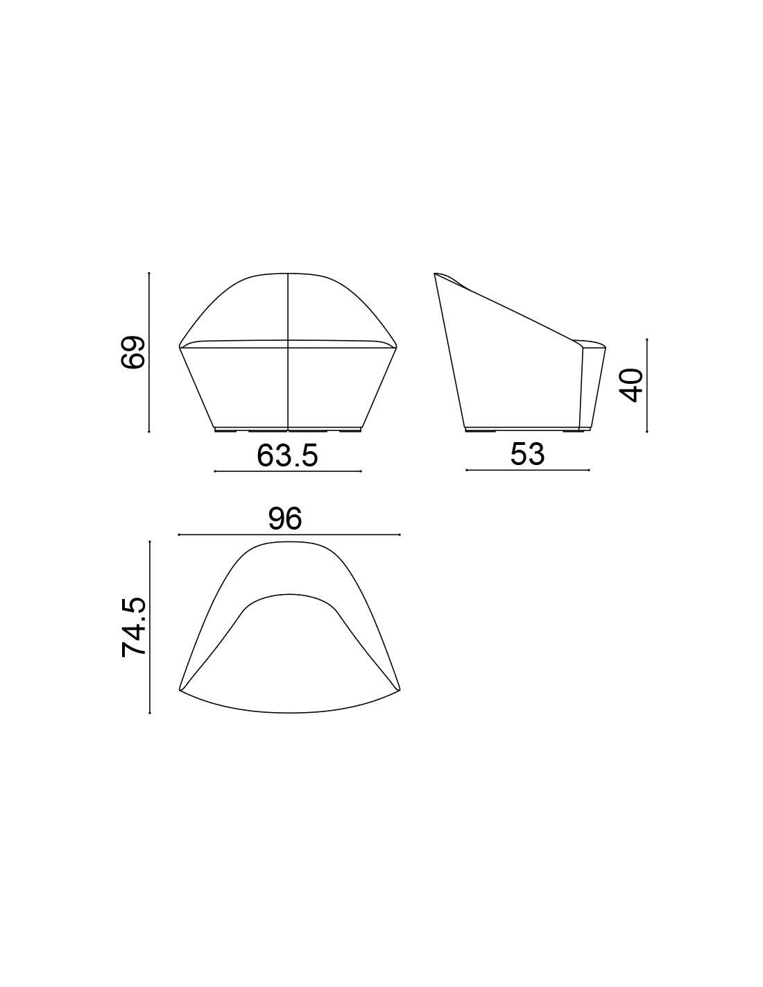ArperPoltrona imbottita (versione M) con telaio in legno multistrato e rivestimento in tessuto, pelle che copre interamente la seduta. Su richiesta la poltrona è disponibile in versione sfoderabile.