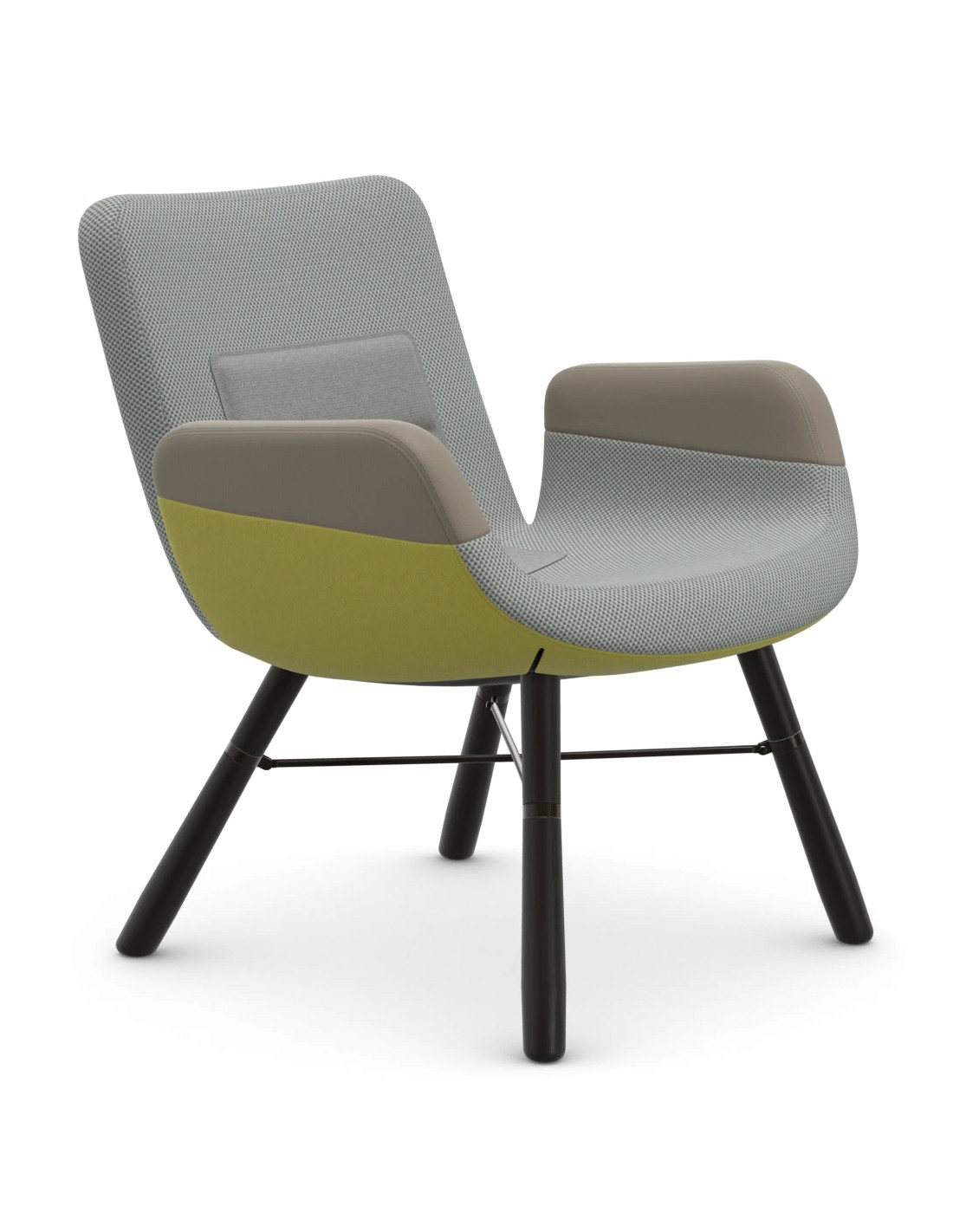 VitraLa East River Chair di Hella Jongerius è una poltroncina di forte impatto visivo, realizzata in diversi materiali quali legno, metallo, pelle e tessuto.