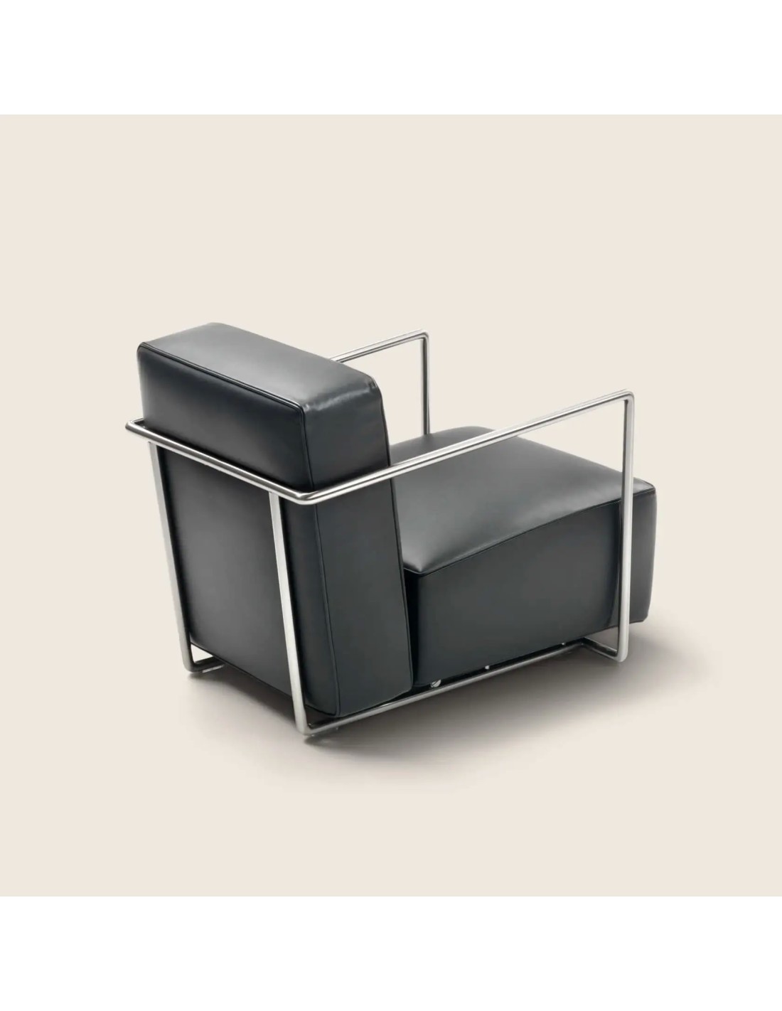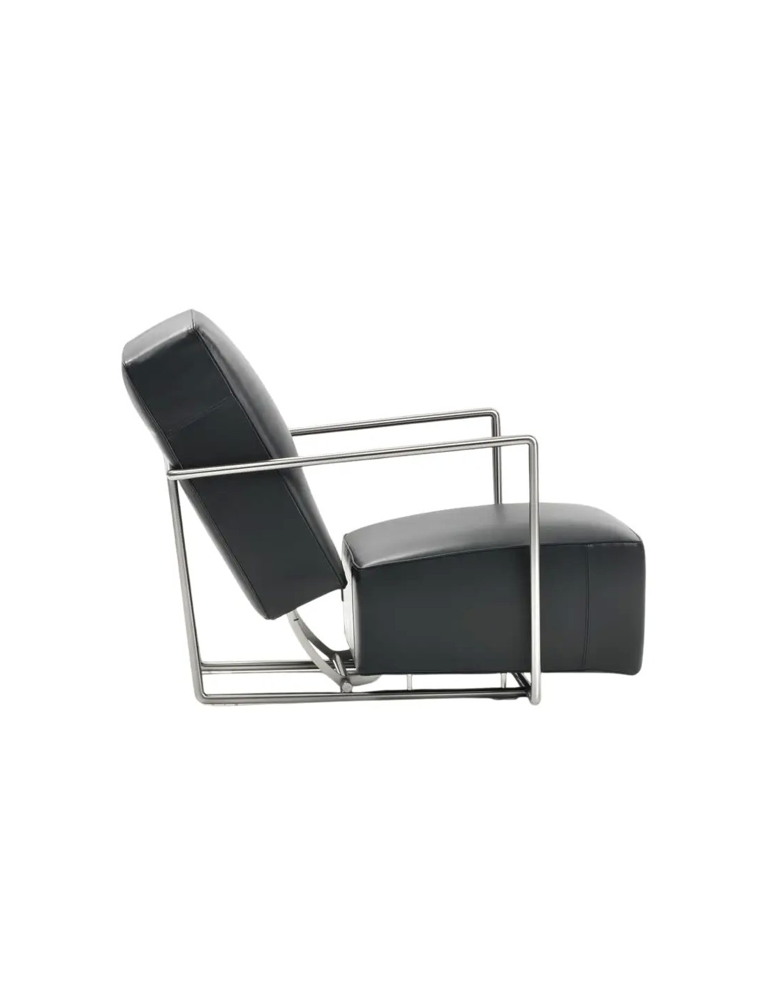 Il contrasto materico è il cuore pulsante di questo arredo: il metallo freddo della struttura dialoga con il calore tattile dei braccioli rivestiti in cuoio pieno fiore. Questa combinazione non solo garantisce una durata eccezionale, ma conferisce alla poltrona una personalità distintiva, capace di invecchiare magnificamente e di adattarsi a contesti domestici o uffici di alta rappresentanza.