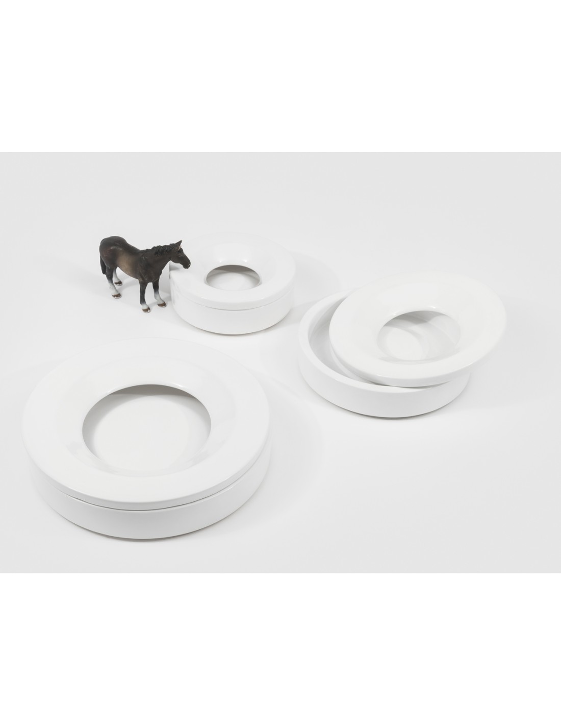 Danese MilanoBarbados è un posacenere in ceramica smaltata, composto da due pezzi: una base e un anello superiore per nascondere parte del contenuto. Semplicità, purezza e geometria conferis