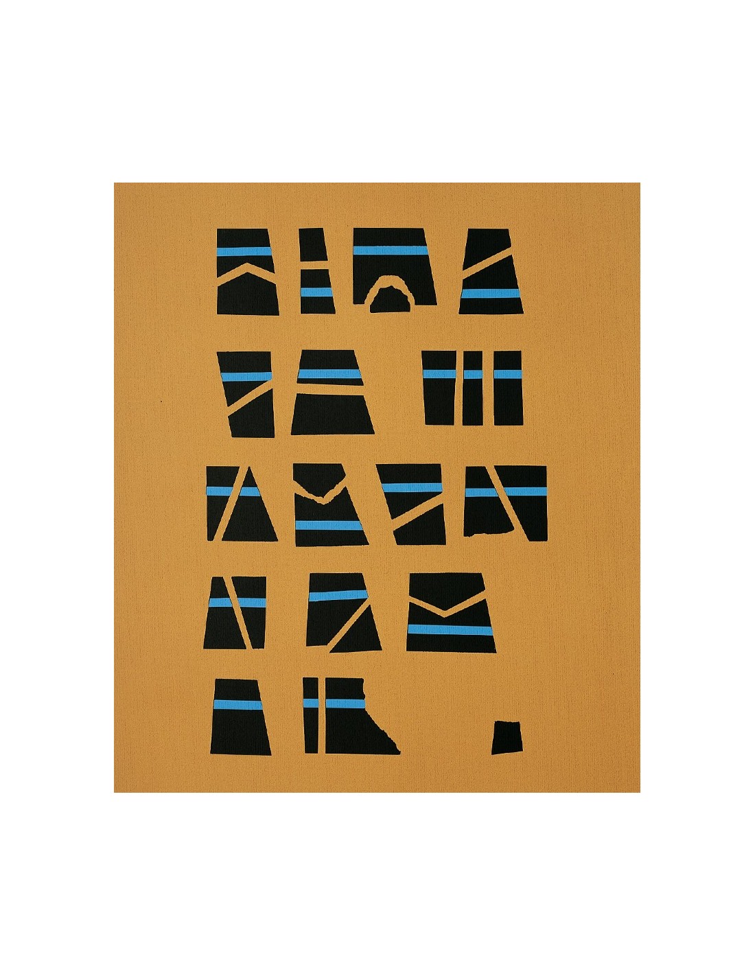 Danese MilanoScrittura illeggibile ocra è una serigrafia a tre colori. L'idea nasce dall'osservazione di scritte di cui, anche senza leggere i testi ma soltanto osservandoli col senso esteti