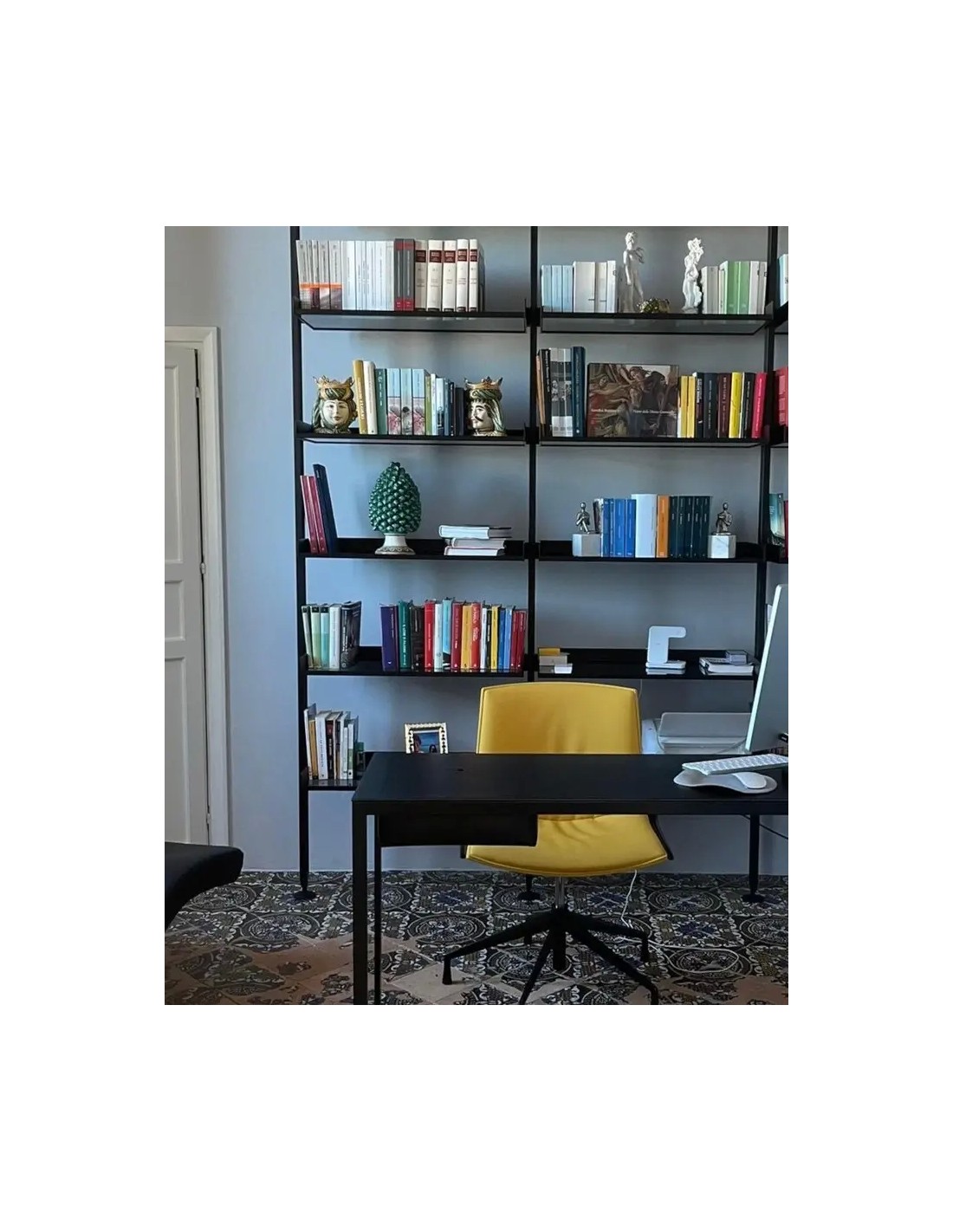 ZanottaStruttura e piano in acciaio verniciato nei colori nero, bianco o grafite. Top e spazio di archiviazione in pelle bovina pigmentato 90. Lo spazio di archiviazione è accessibile da un'apertura a goccia.