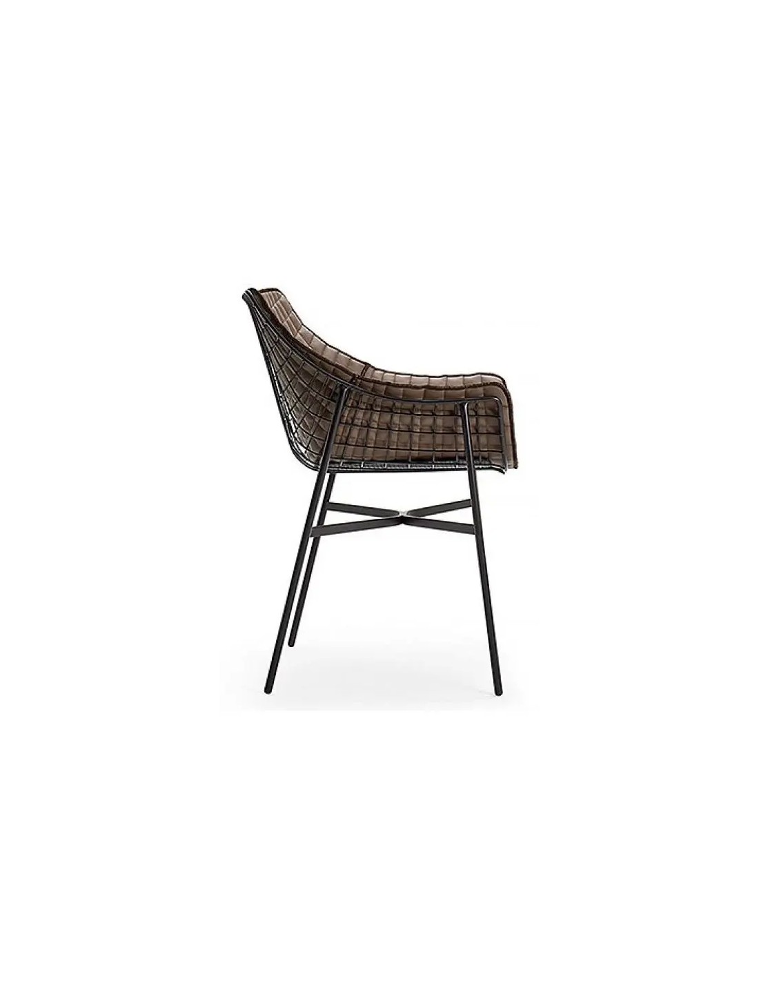 Il design della poltroncina Summer Set segue una curva dolce e accogliente, plasmata da una griglia in tondino di metallo, richiamata nel motivo trapuntato del cuscino che la riveste.