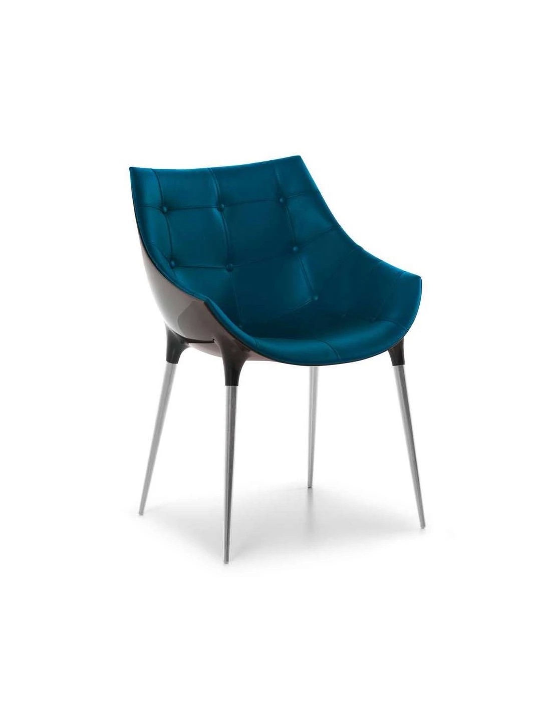 Accogliente e confortevole, la sagoma futuristica della scocca in nylon simboleggia la sperimentazione avanzata di Cassina articolandosi in un rivestimento liscio o nella raffinata lavorazione capitonné brevettata da Cassina e modellata sulla struttura come un abito sartoriale.
