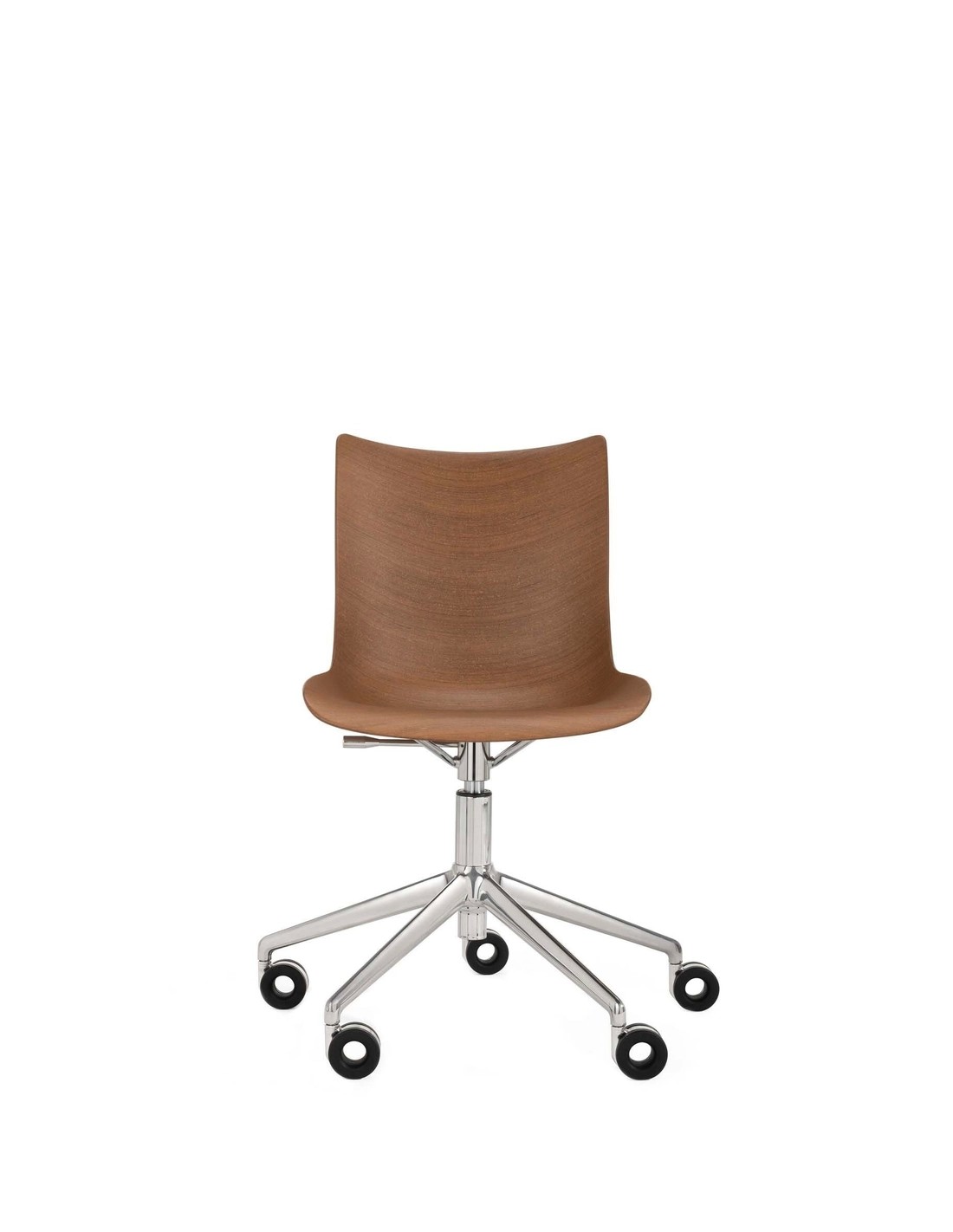 KartellLa famiglia di poltroncine si arricchisce della nuova versione girevole a rotelle. P/wood è caratterizzata da una lavorazione unica del legno che unisce un’eleganza senza tempo