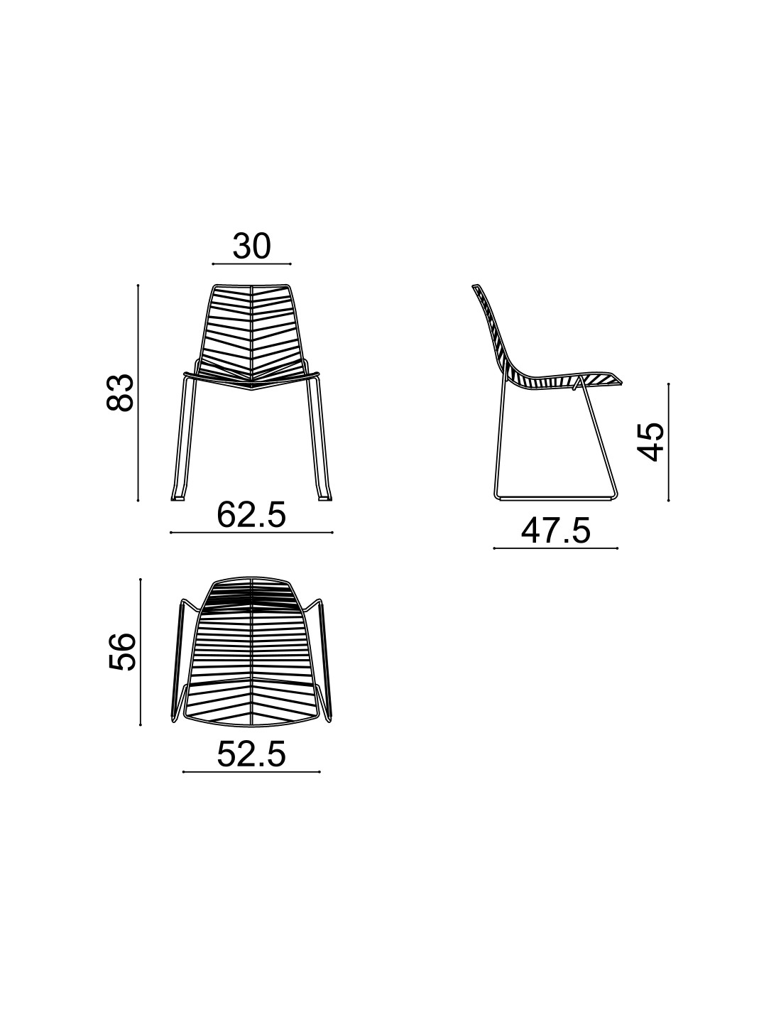 Seduta impilabile realizzata con tondini in acciaio verniciato con fusto a slitta.