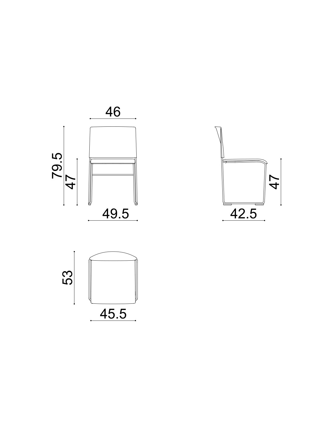 ArperSedia su fusto a slitta in acciaio cromato o verniciato. Sedile rivestito in tessuto, pelle, tessuto spalmato o rivestimento cliente e schienale in polipropilene disponibile in cinque colori.