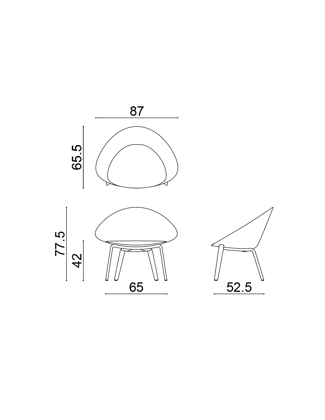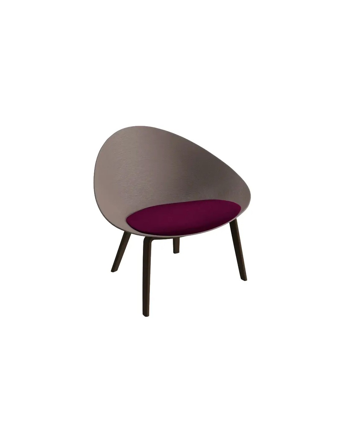 Poltroncina lounge su fusto a quattro gambe in legno multistrato e finitura in precomposto rovere naturale o tinto.