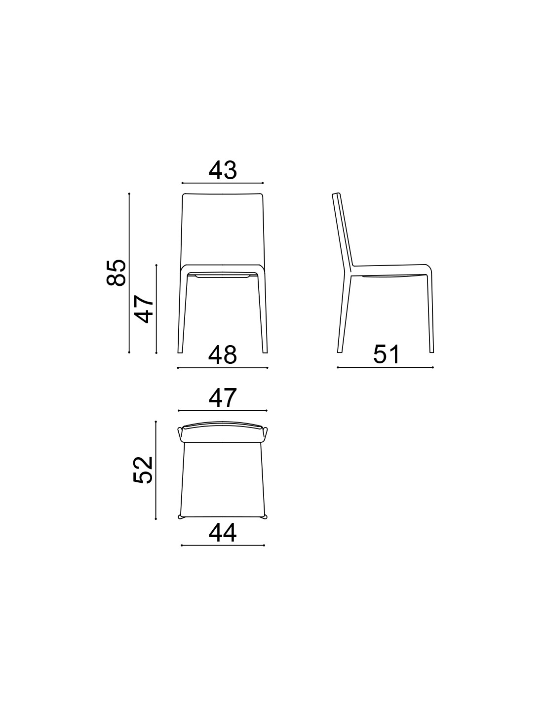 Seduta impilabile con struttura in acciaio e gambe rivestite. La scocca con schienale medio è imbottita in poliuretano ed è disponibile rivestita in tessuto, tessuto spalmato, pelle, tessuto o pelle cliente.