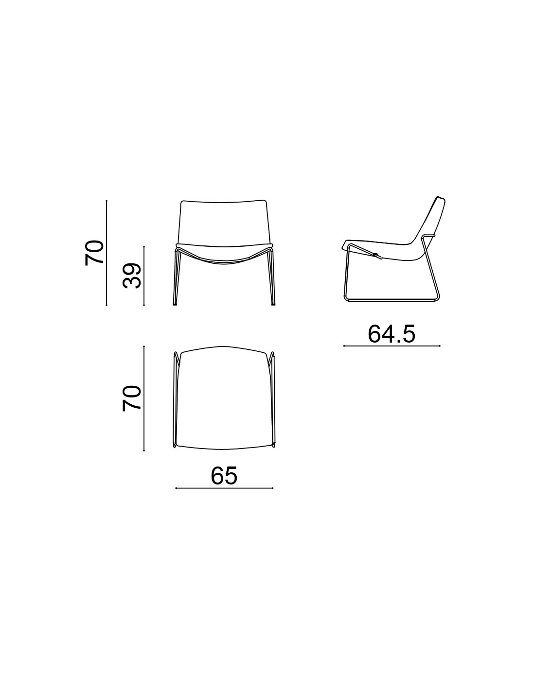 Poltroncina lounge con struttura a slitta in acciaio cromato o verniciato. La scocca con schienale basso è in poliuretano rivestita in tessuto, pelle, tessuto spalmato.