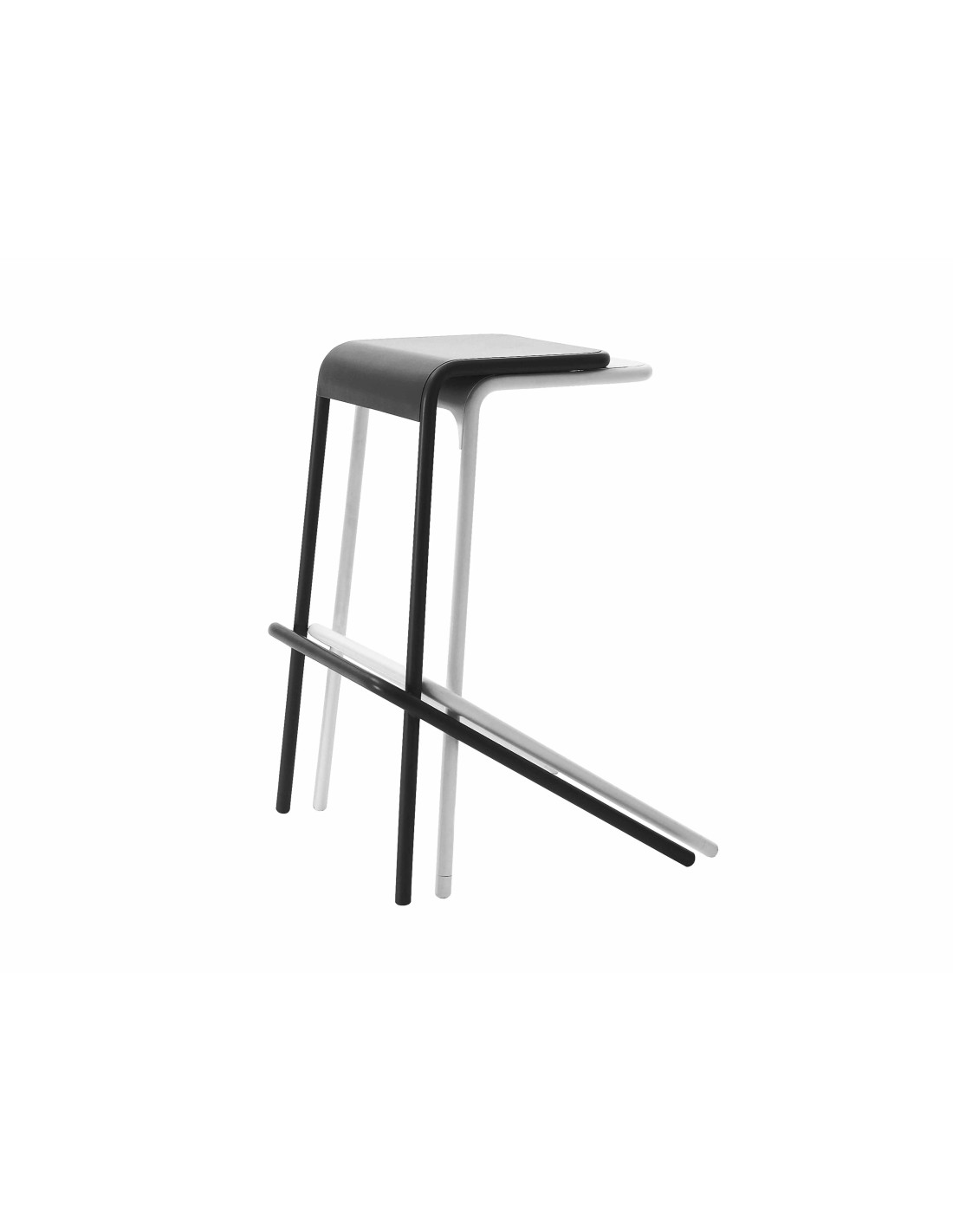 Progettato da Todd Bracher, lo sgabello Alodia è un modello impilabile realizzato in tubo di metallo, con seduta in lamiera metallica tagliata al laser e piedini in polipropilene nero. Alodia è disponibile in due altezze e viene proposto verniciato opaco nei colori bianco, fango e antracite.