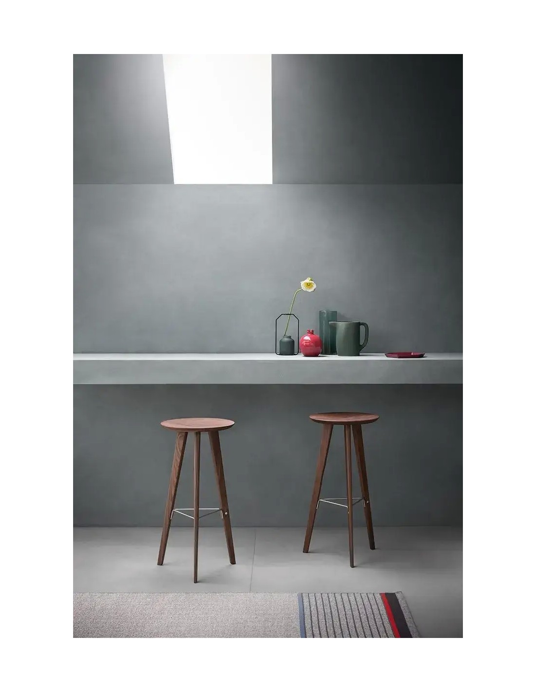 ZanottaIdo di Zanotta - Sgabelli. Struttura in massello di rovere o noce canaletto, verniciato naturale. Poggiapiedi in acciaio inox satinato.