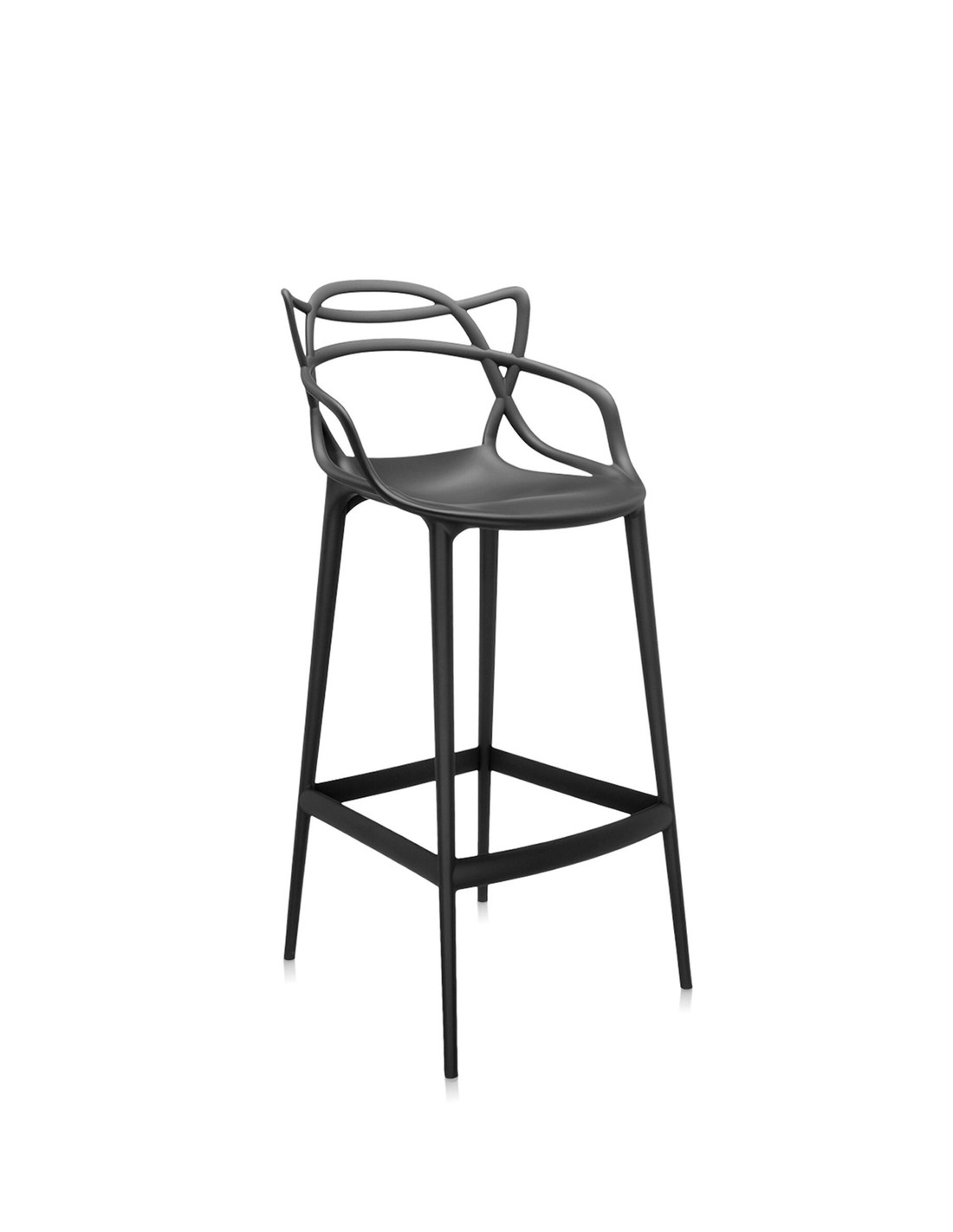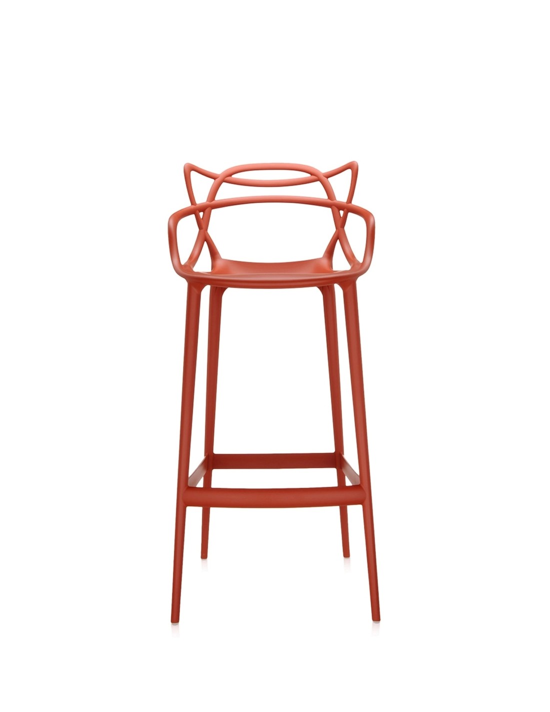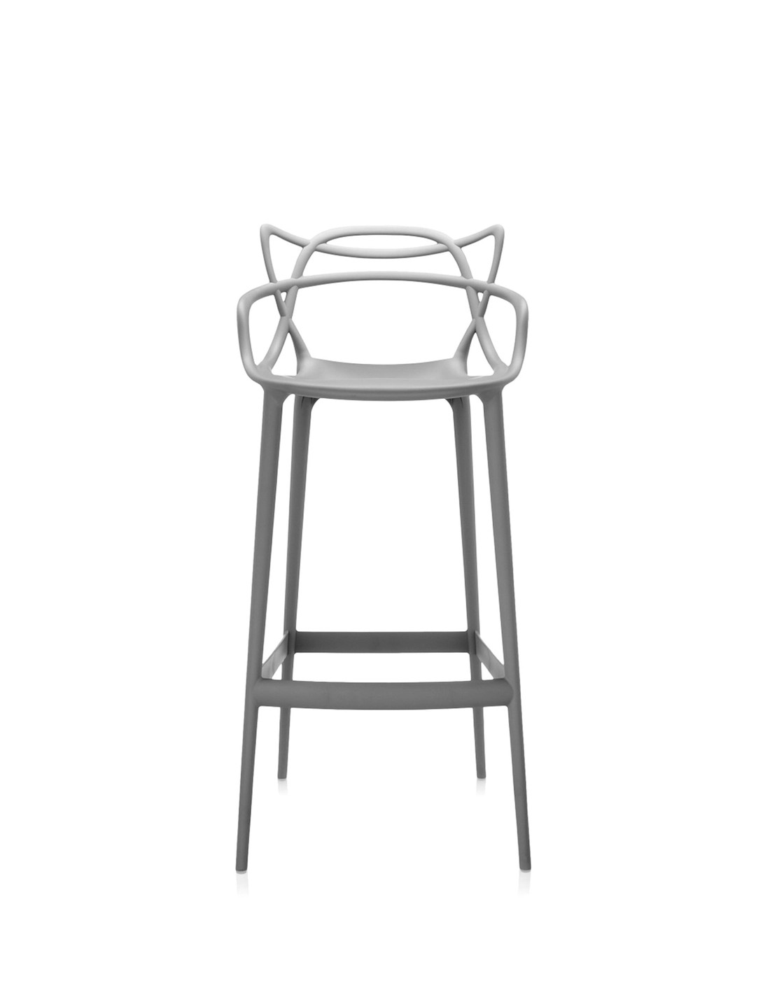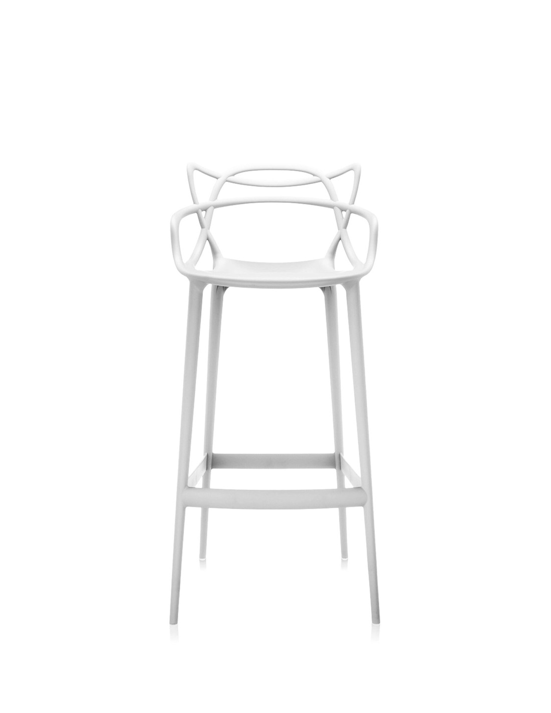Realizzato in polipropilene stampato a iniezione, Masters Stool è disponibile in una gamma di tinte vivaci che spaziano dai colori neutri ai toni più decisi, permettendo di personalizzare qualsiasi ambiente. L'altezza della seduta a 75 cm lo rende ideale per banconi cucina, isole centrali, bar e ristoranti.