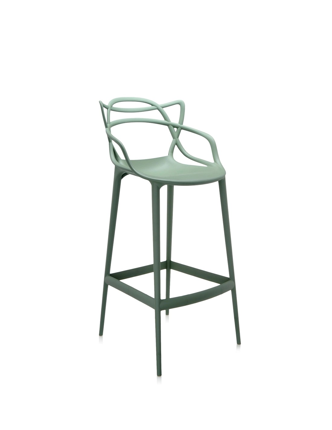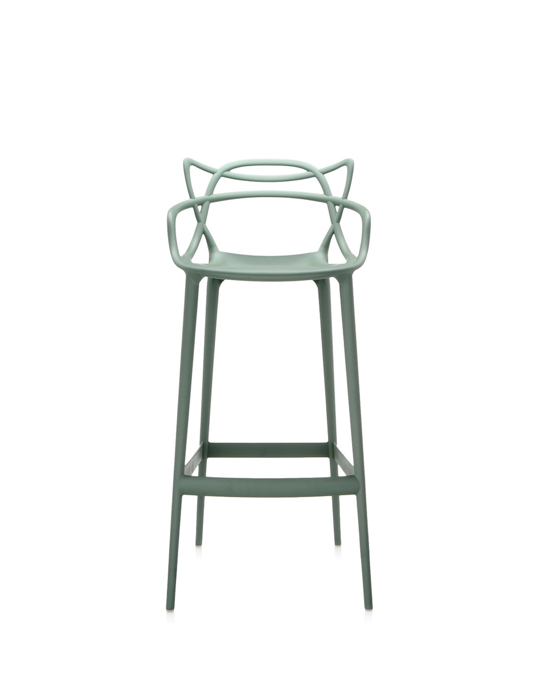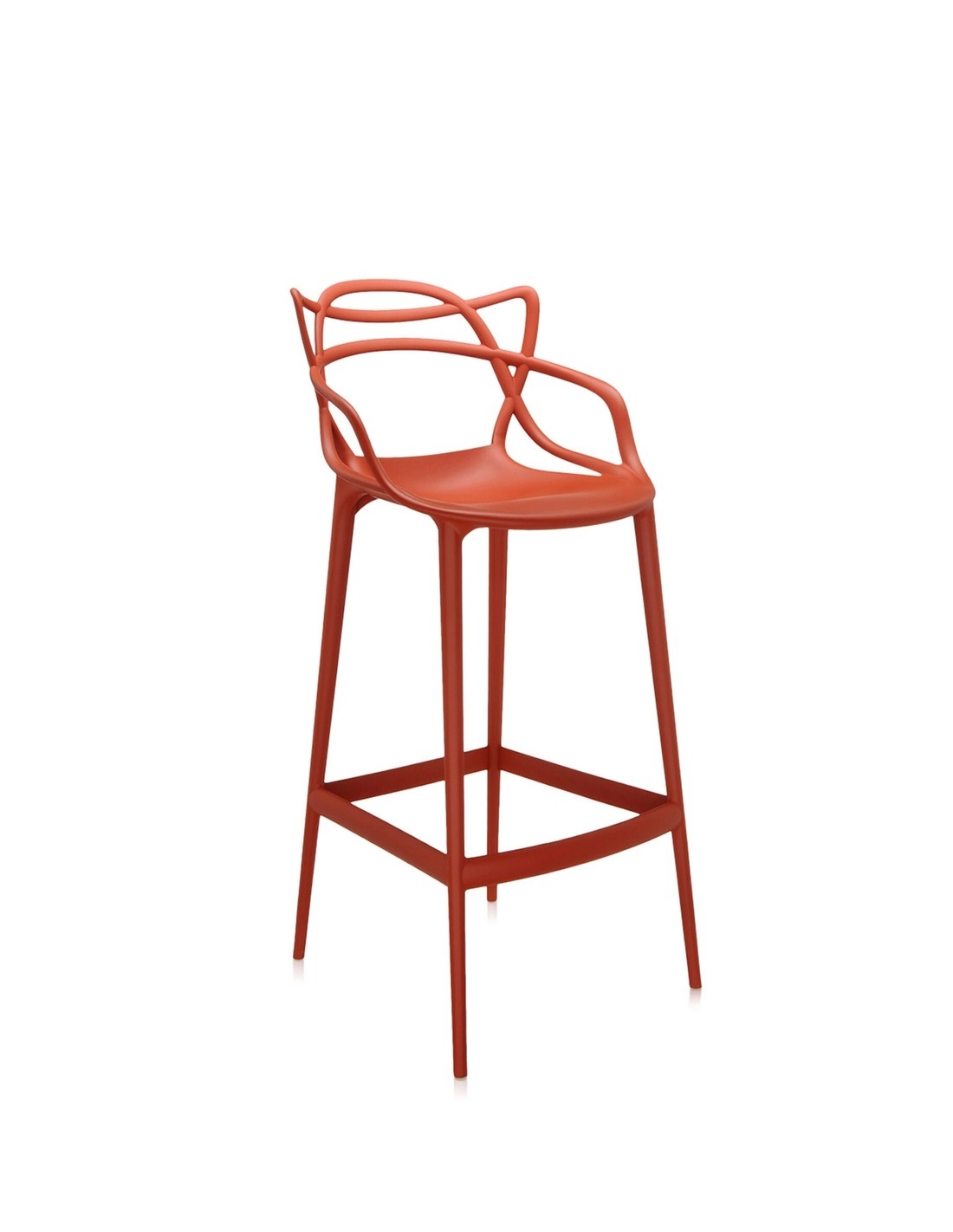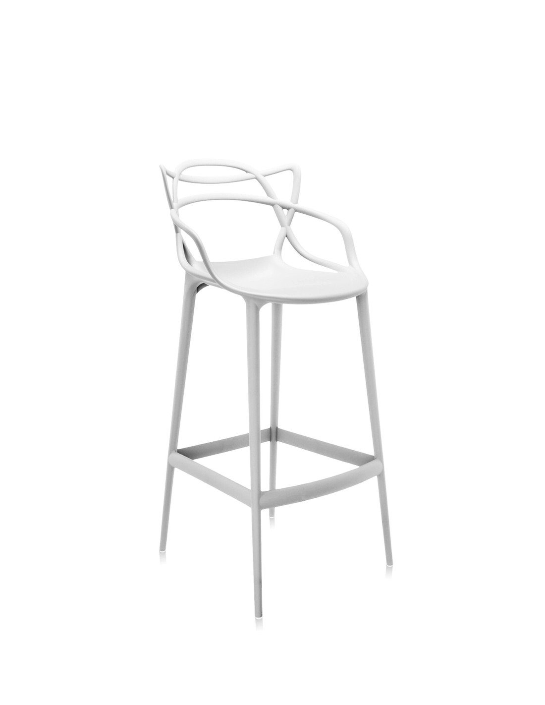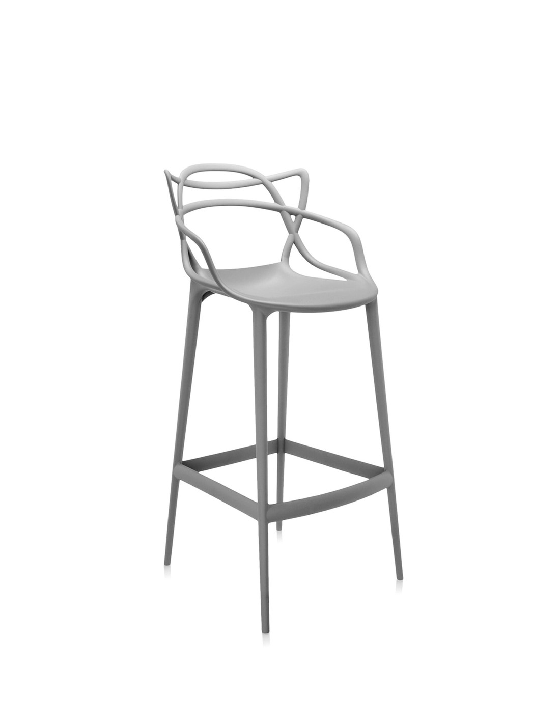 Realizzato in polipropilene stampato a iniezione, Masters Stool è disponibile in una gamma di tinte vivaci che spaziano dai colori neutri ai toni più decisi, permettendo di personalizzare qualsiasi ambiente. L'altezza della seduta a 75 cm lo rende ideale per banconi cucina, isole centrali, bar e ristoranti.