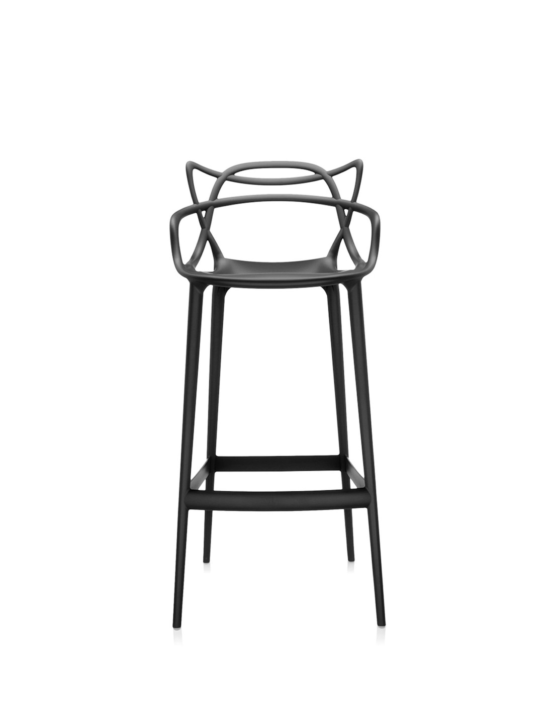 KartellLo sgabello Masters di Kartell, progettato da Philippe Starck con Eugeni Quitllet, riprende l'inconfondibile segno grafico dato dall'intreccio delle silhouette di tre sedie leggendarie della storia del design, creando un oggetto che è già diventato un best-seller mondiale e un'icona di stile contemporaneo.