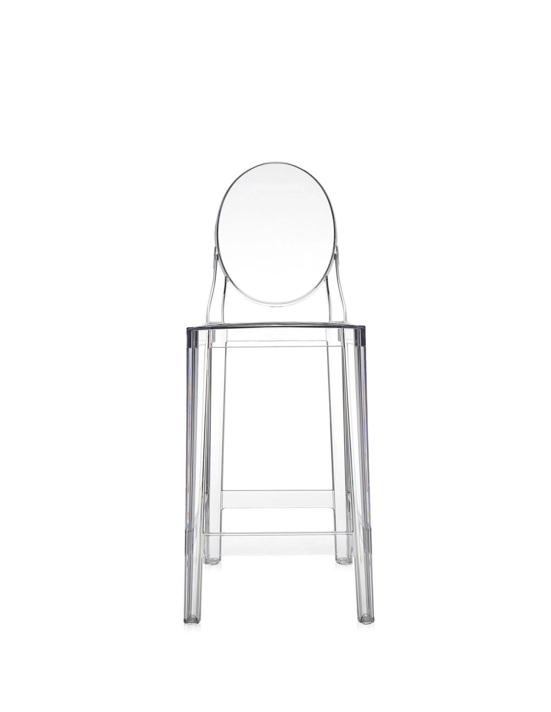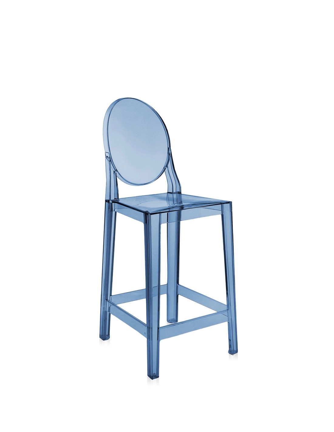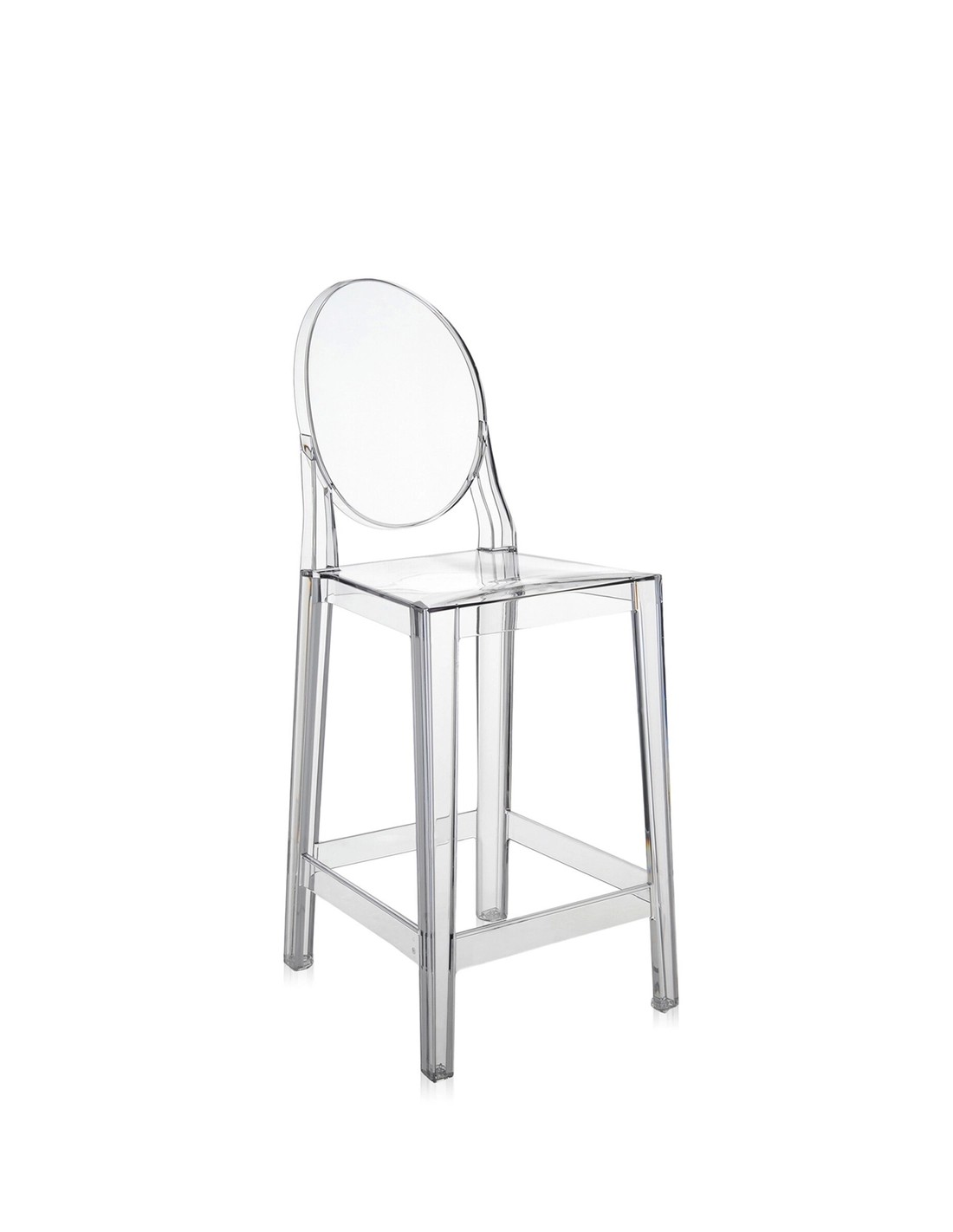 One More è lo sgabello alto della famiglia Ghost che porta la firma di Philippe Starck. A differenza del Charles Ghost senza schienale, One More presenta uno schienale ergonomico che offre maggiore supporto e comfort, ideale per sedute prolungate al bancone.