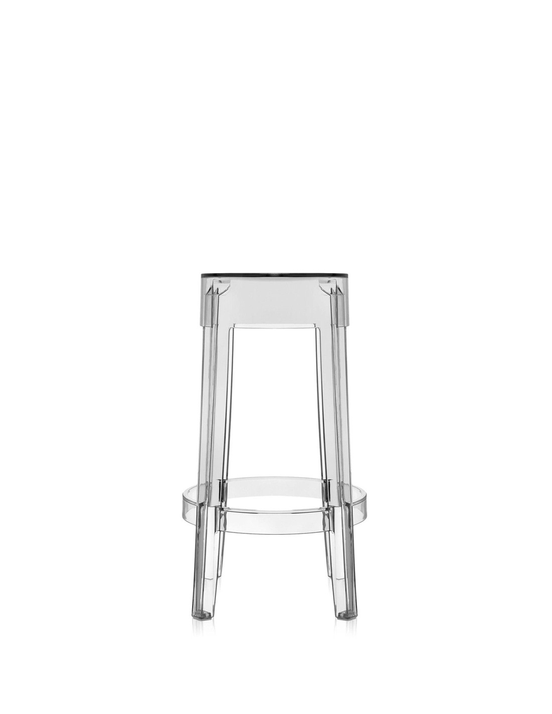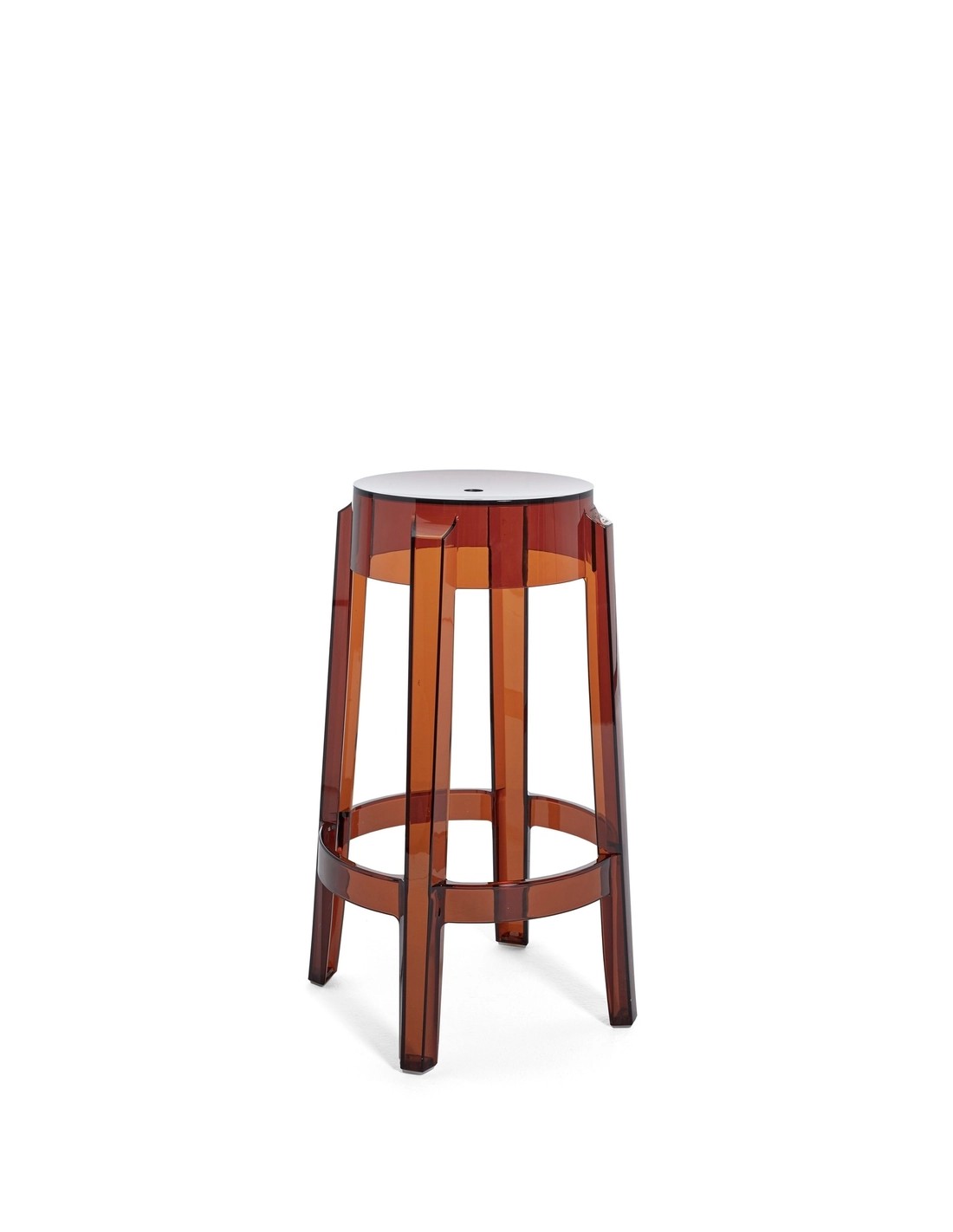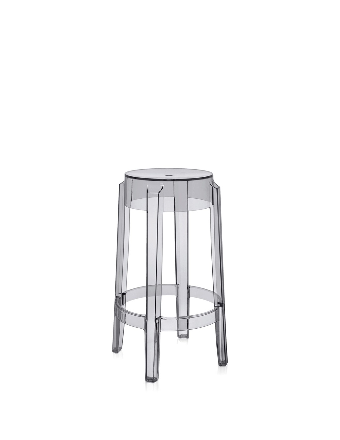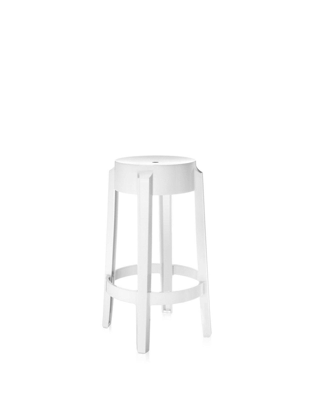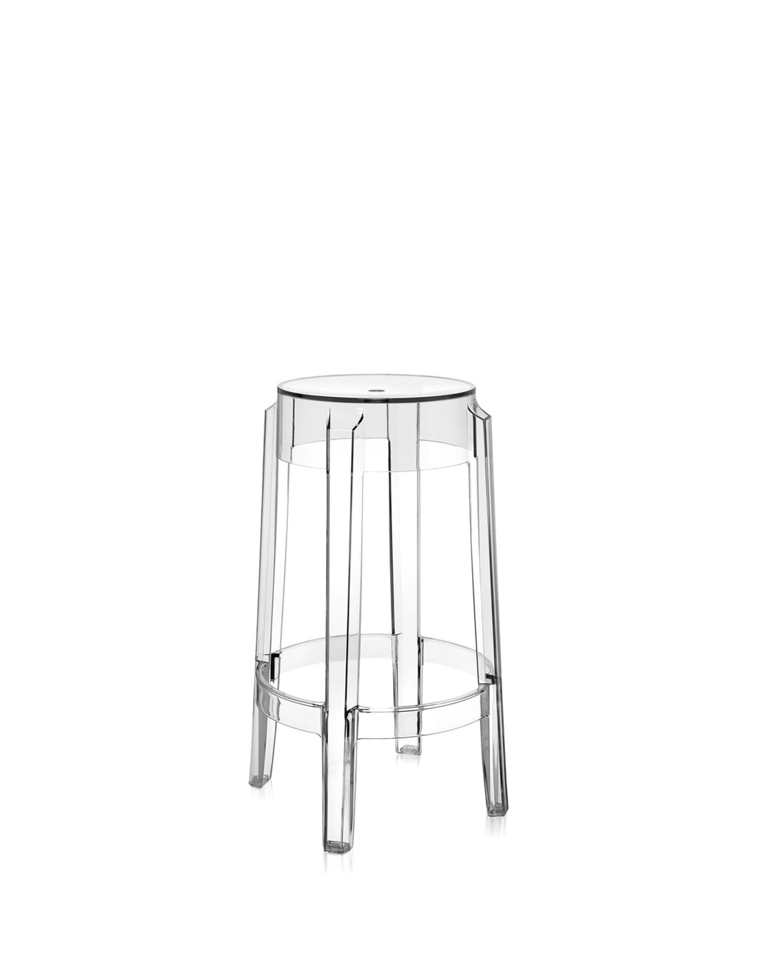Charles Ghost richiama le forme delle sedute ottocentesche, dove la linea della gamba arrotondata e arricciata rappresenta l'icona dello sgabello classico reinterpretato in chiave contemporanea.