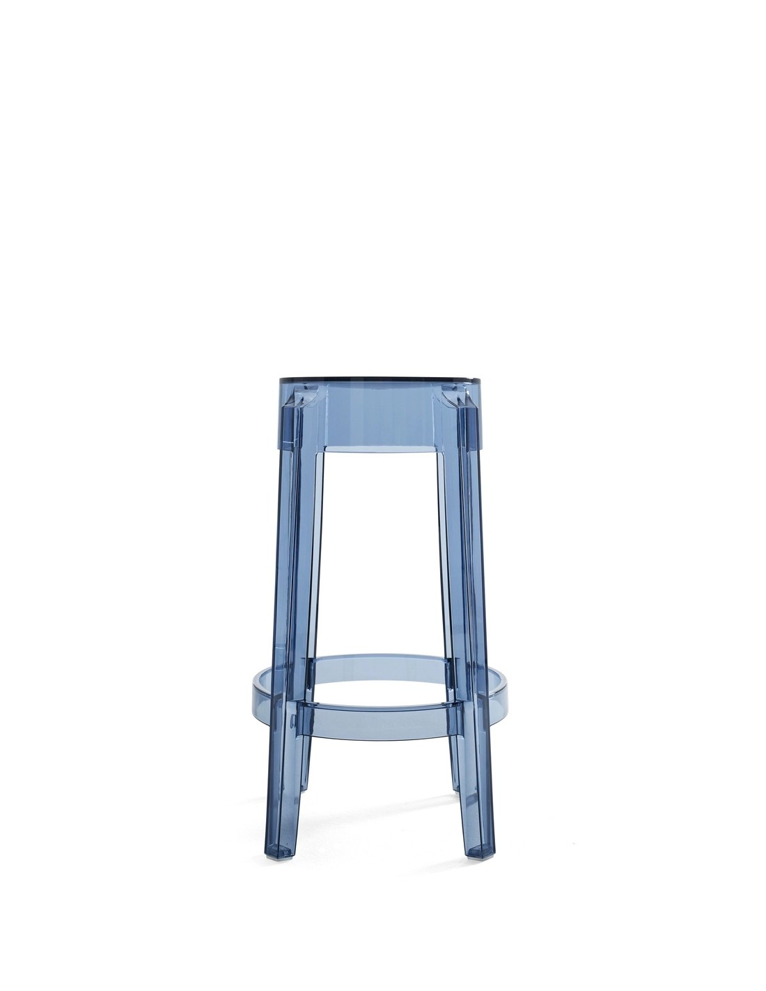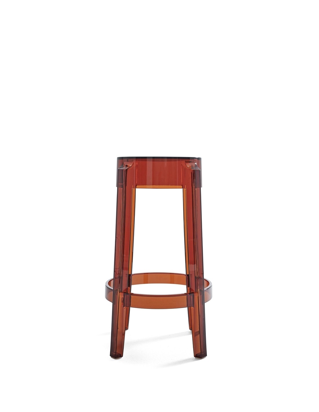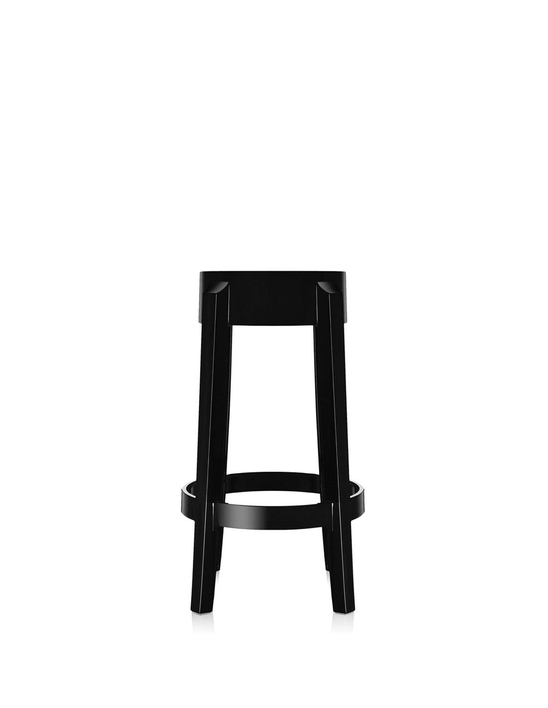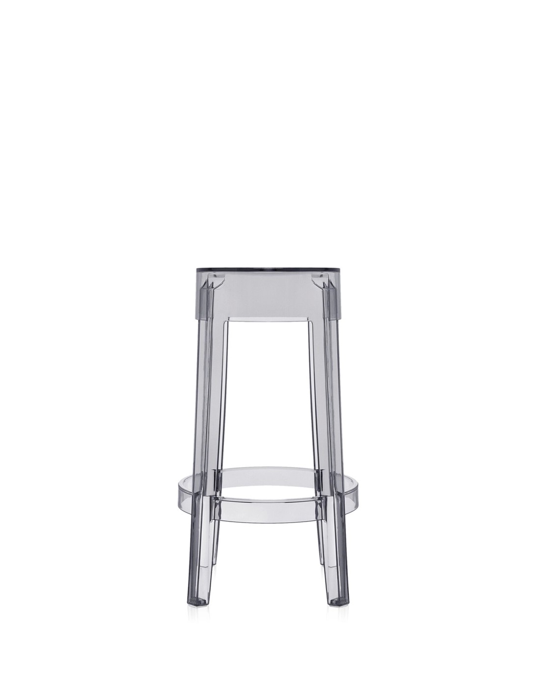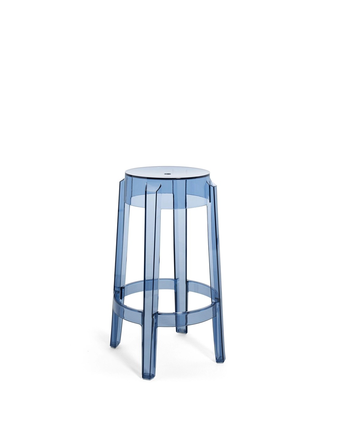 Charles Ghost richiama le forme delle sedute ottocentesche, dove la linea della gamba arrotondata e arricciata rappresenta l'icona dello sgabello classico reinterpretato in chiave contemporanea.