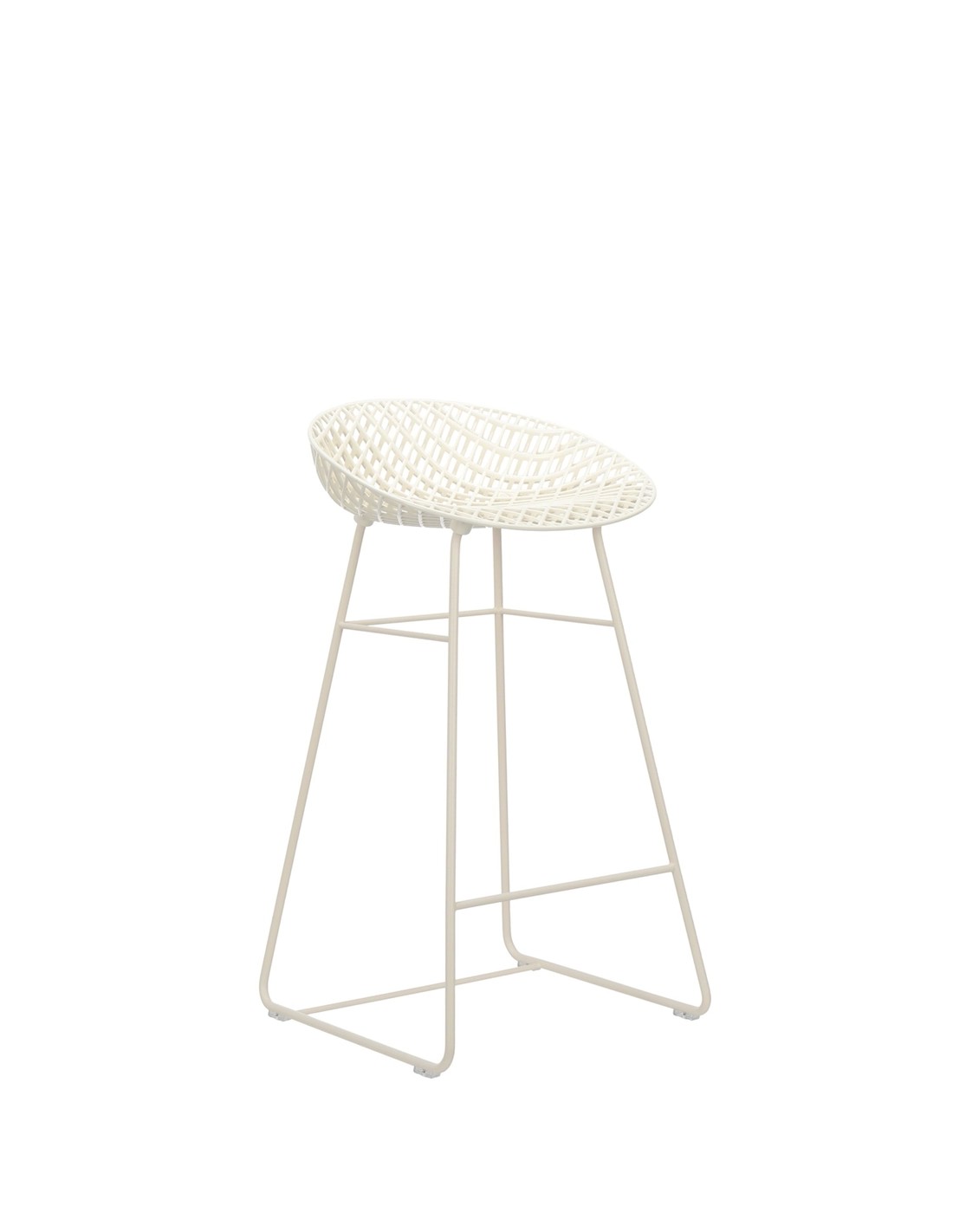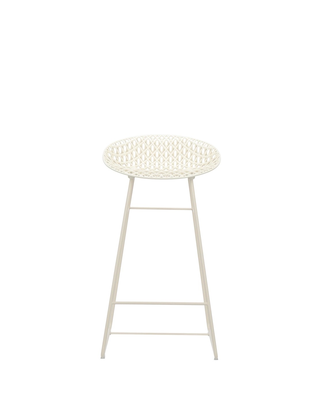 La seduta da 43 x 43 cm è ergonomica e confortevole, con un'altezza di 65 cm ideale per banconi cucina, isole centrali e banconi bar. La base in acciaio verniciato o cromato garantisce stabilità e resistenza, con una traversa che funge da pratico poggiapiedi.