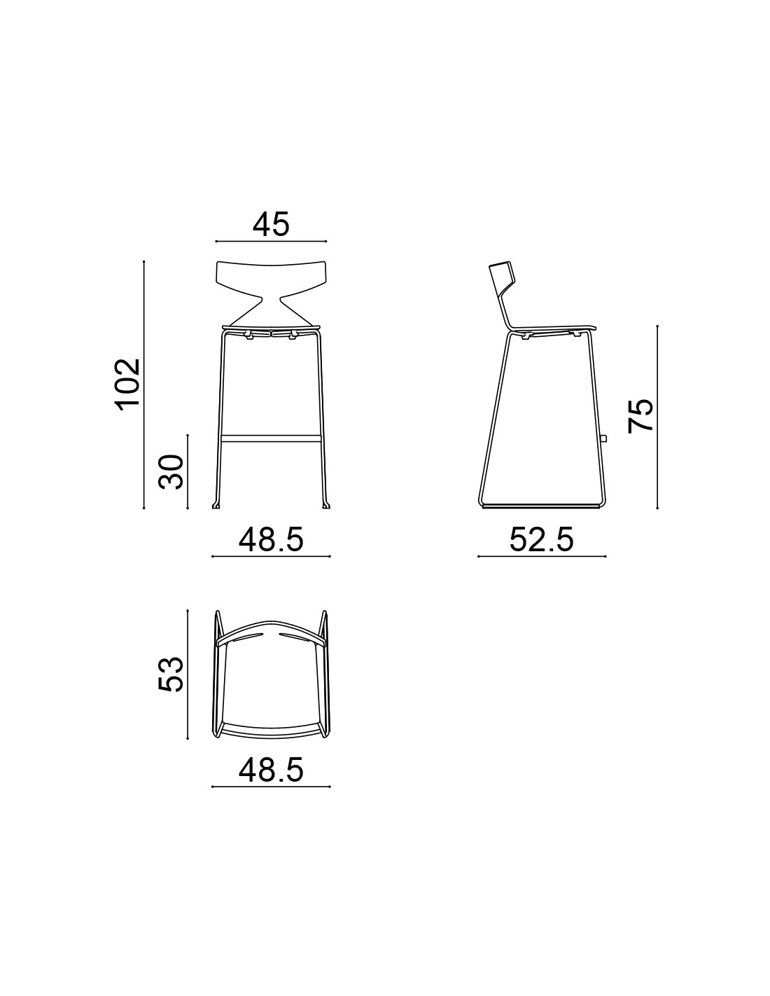 ArperSgabello bar su fusto a slitta in acciaio cromato o verniciato e scocca in legno tranciato rovere disponibile in 4 finiture.