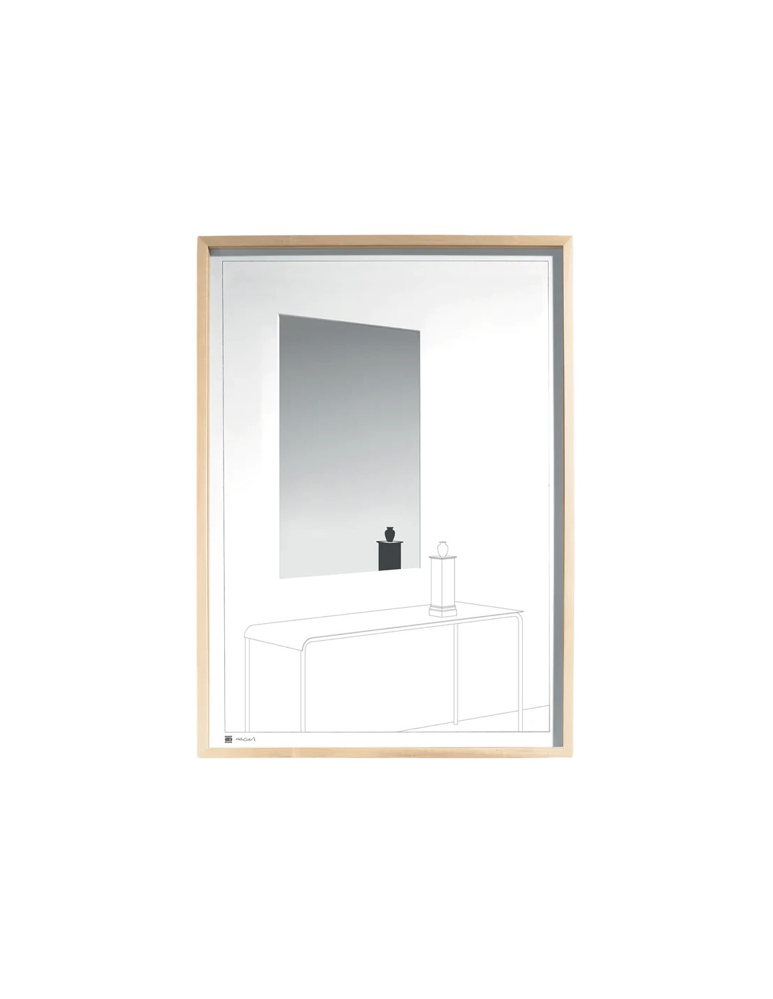 Danese MilanoDrawing no 13 è uno specchio all'interno di una cornice rettangolare che contiene l'immagine di una stanza.