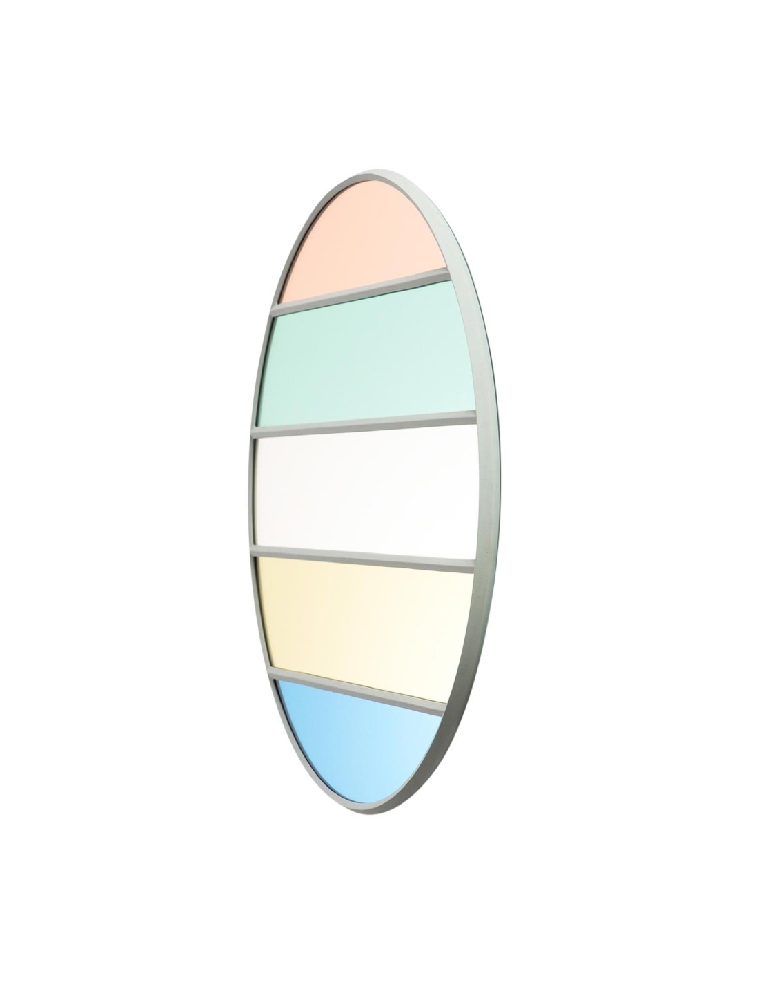 MagisSpecchi a muro. Materiali: cornice in gomma. Vetro retropellicolato con fasce colorate.