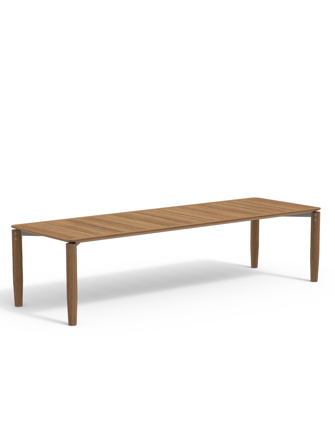 Il piano ritmato da ampie doghe e le linee morbide e arrotondate della struttura sono animate da una forte identità visiva che rende il tavolo LEVANTE - e tutta la collezione - un prodotto estremamente attuale e trasversale, per arredare un patio o uno yatch con estrema facilità, un po' come se fosse stato lì da sempre.