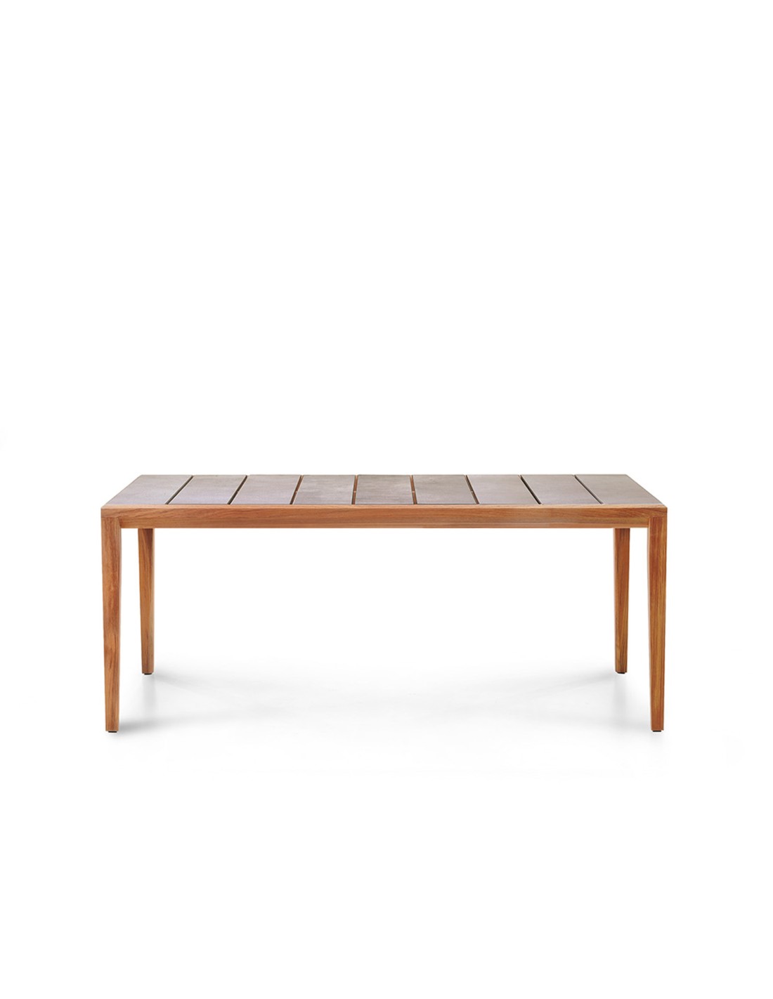 La collezione TEKA racchiude l'abilità di RODA di innovare e accostare armonicamente materiali naturali e sofisticate tecnologie per creare soluzioni living e dining dal design originale. Tutta la collezione si sviluppa intorno ad una particolare geometria costruttiva, a forma di prisma, che conferisce grande personalità al prodotto, combinando linee essenziali e leggere con l'intrinseca robustezza del legno. Il sapiente mix di forme materiali ha come protagonista il teak, abbinato ad una suggestiva ed originale dogatura in gres opaco o smaltato per i top dei piani. La collezione TEKA è composta da divani modulari, sedie, poltroncine, tavoli e tavolini.